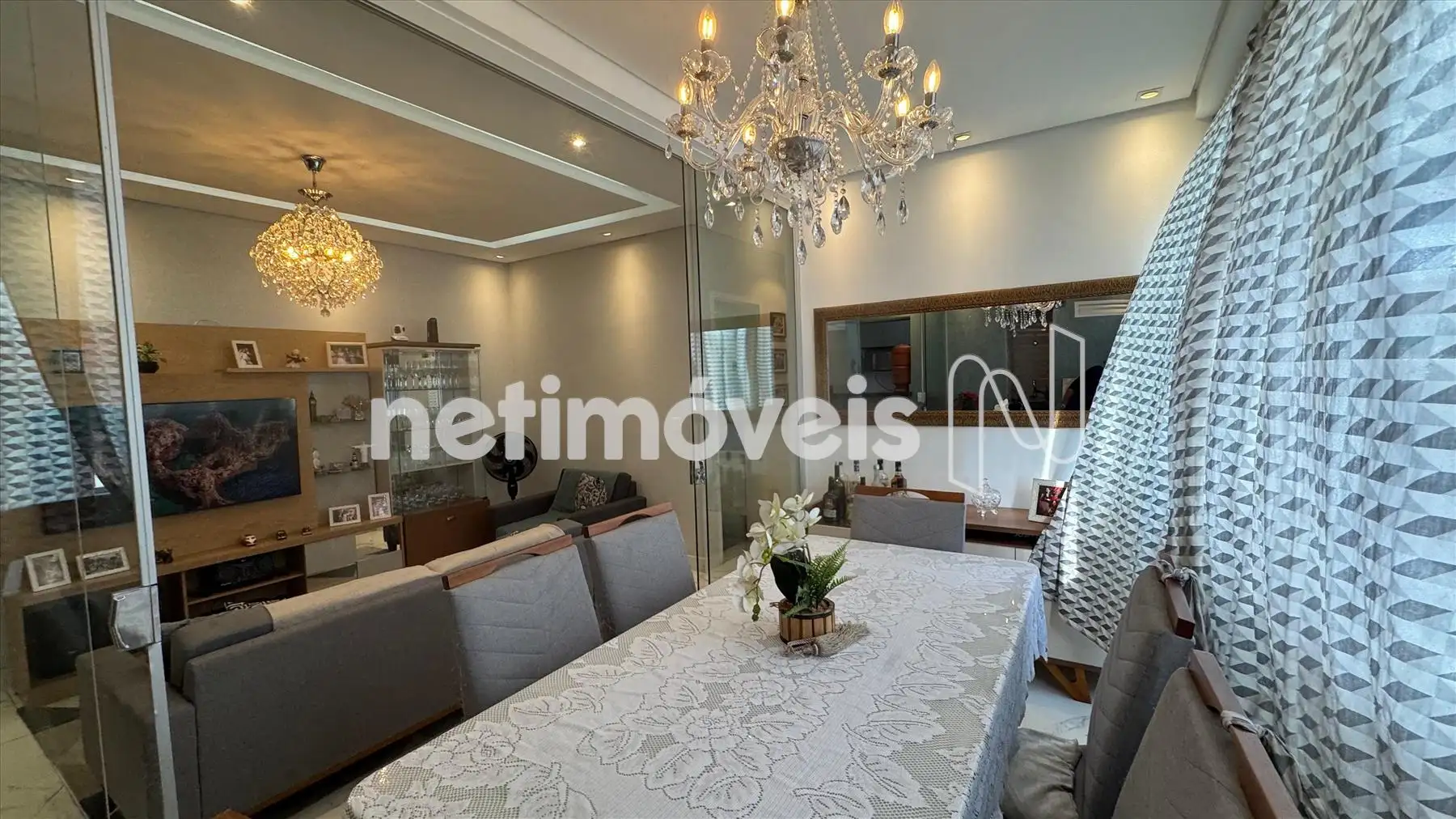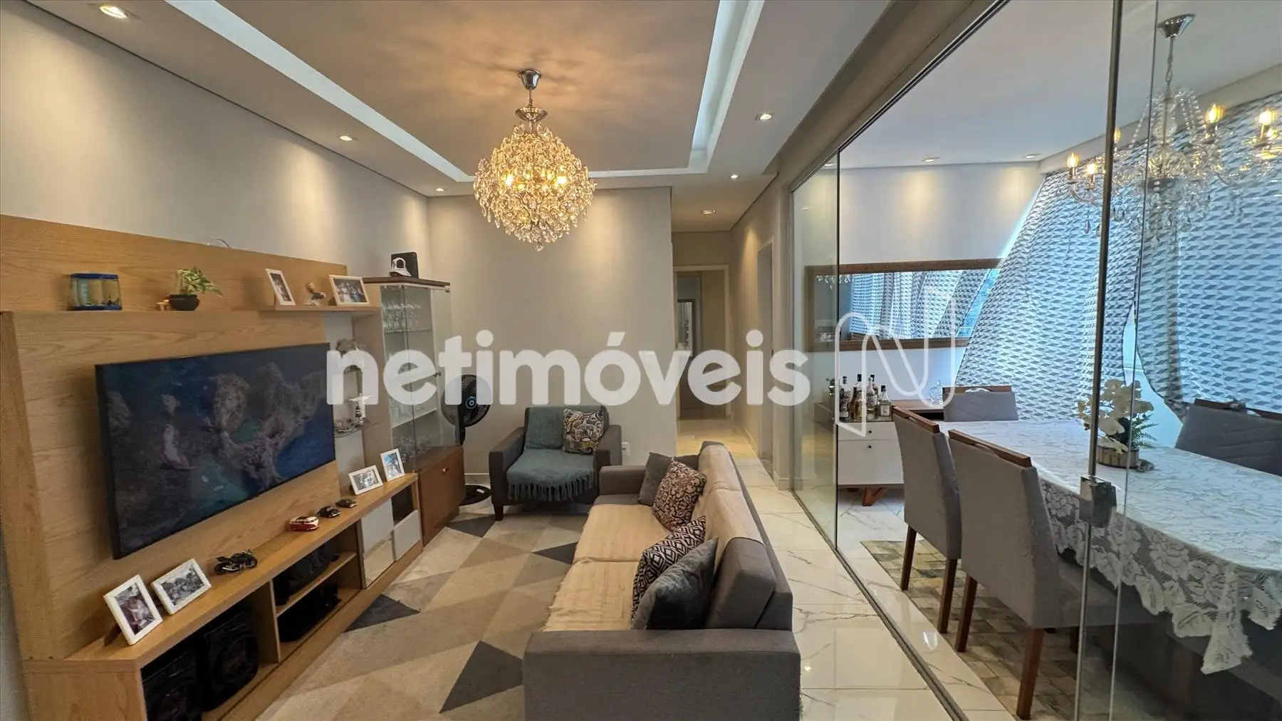 Sala 2 ambientes , piso em porcelanato, rebaixamento de teto em gesso com iluminação indireta,