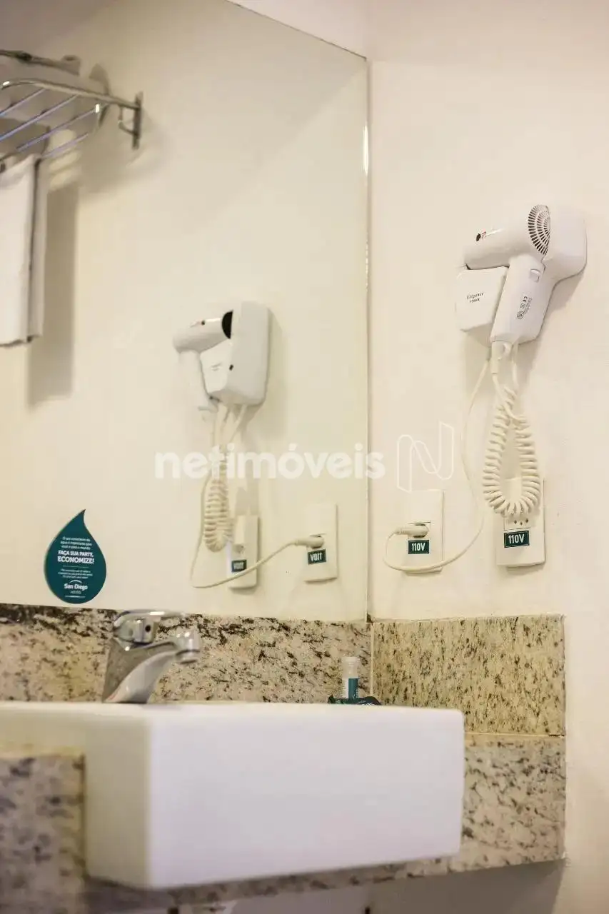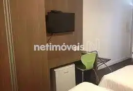 Flat com aproximadamente 20m², ideal para quem busca conforto e funcionalidade. O quarto conta com cama de casal, ar-condicionado, TV a cabo, cofre eletrônico, frigobar, bancada de trabalho, armário e piso em laminado de madeira. O banheiro possui box blindex e piso em cerâmica. O imóvel inclui ainda uma vaga de garagem coberta.
