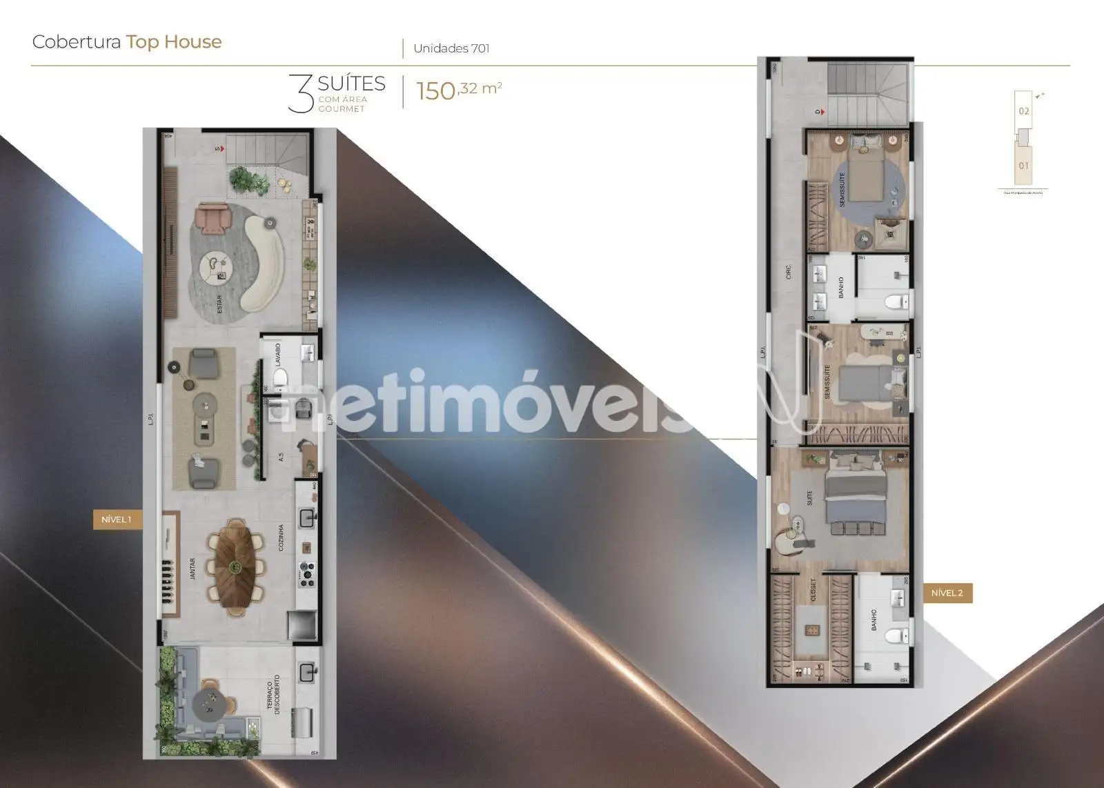 2 Banheiros sendo 2 suites