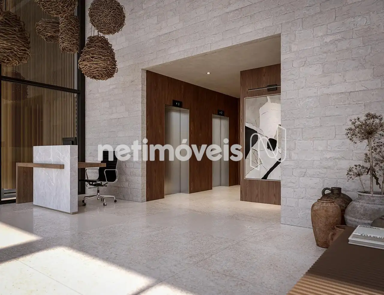 Fachada revestida com elementos que trazem leveza para o empreendimento.