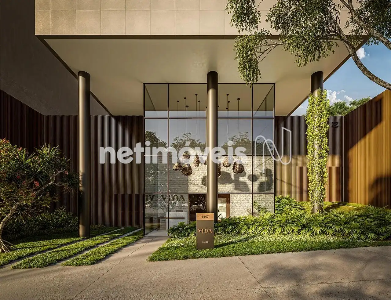 Fachada imponente, revestida com materiais que transmitem leveza e elegância.