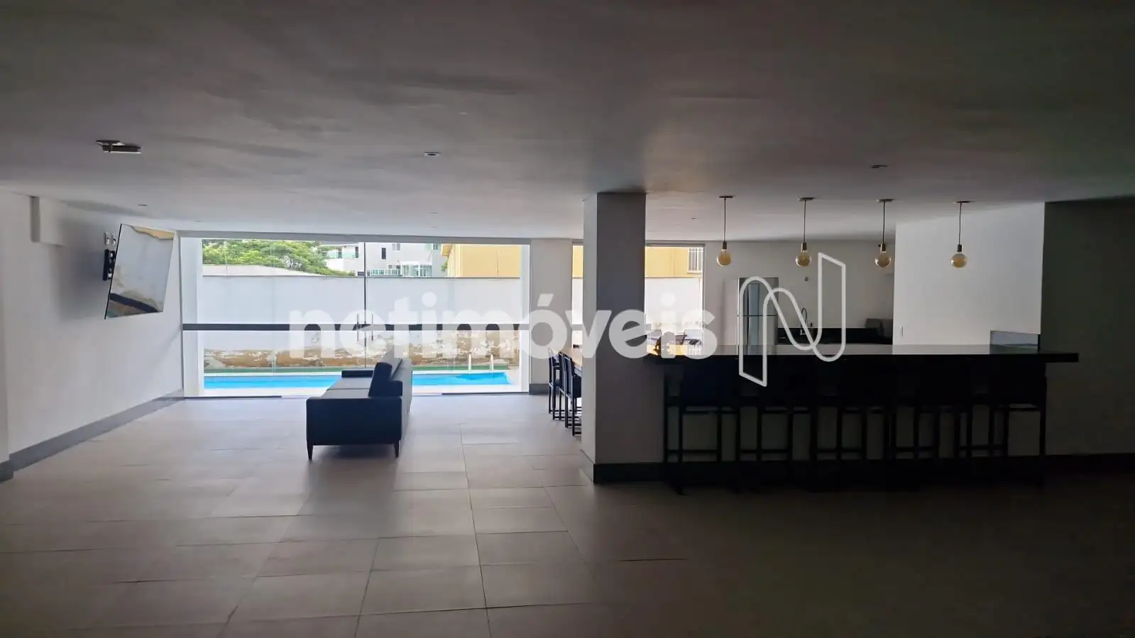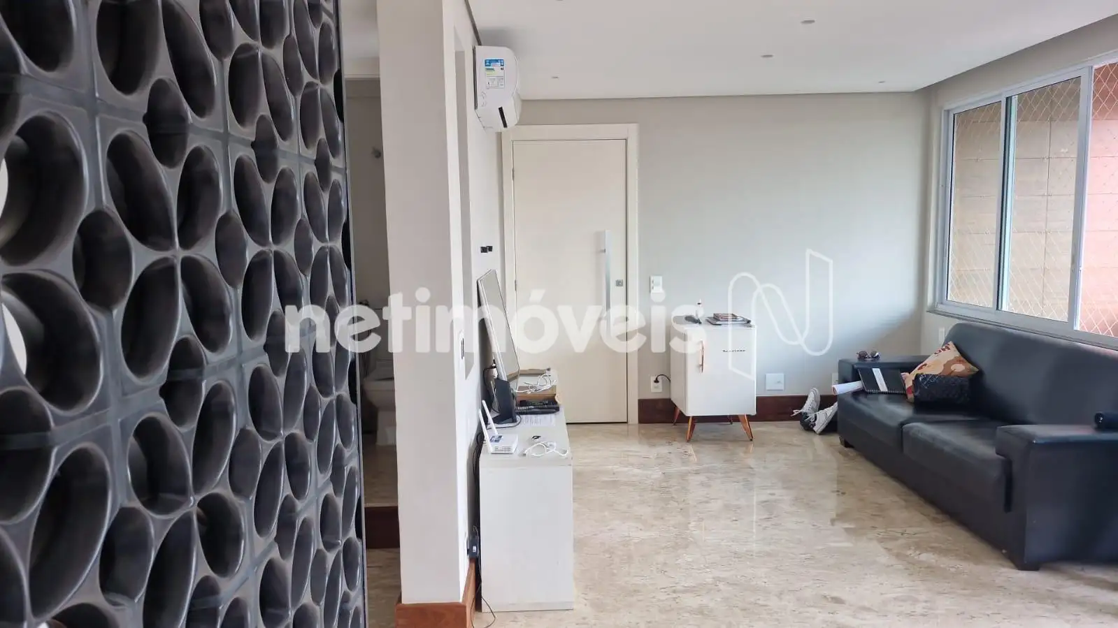 Sala com piso em porcelanato.