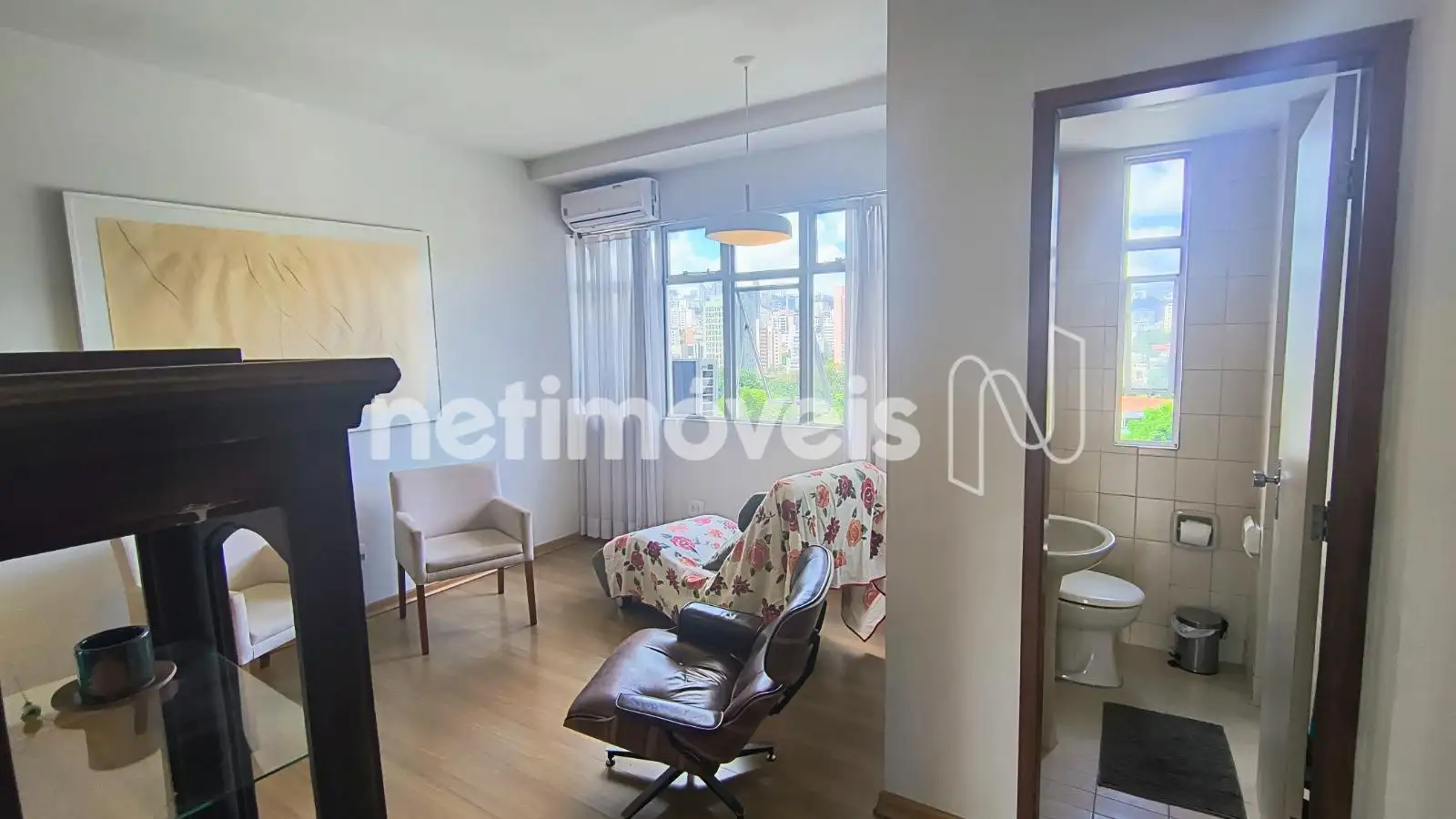 Excelente sala, muito conservada, com aproximadamente 30 m², bastante clara e arejada, com antessala, piso laminado, 01 lavabo piso cerâmica. Ótima vista.