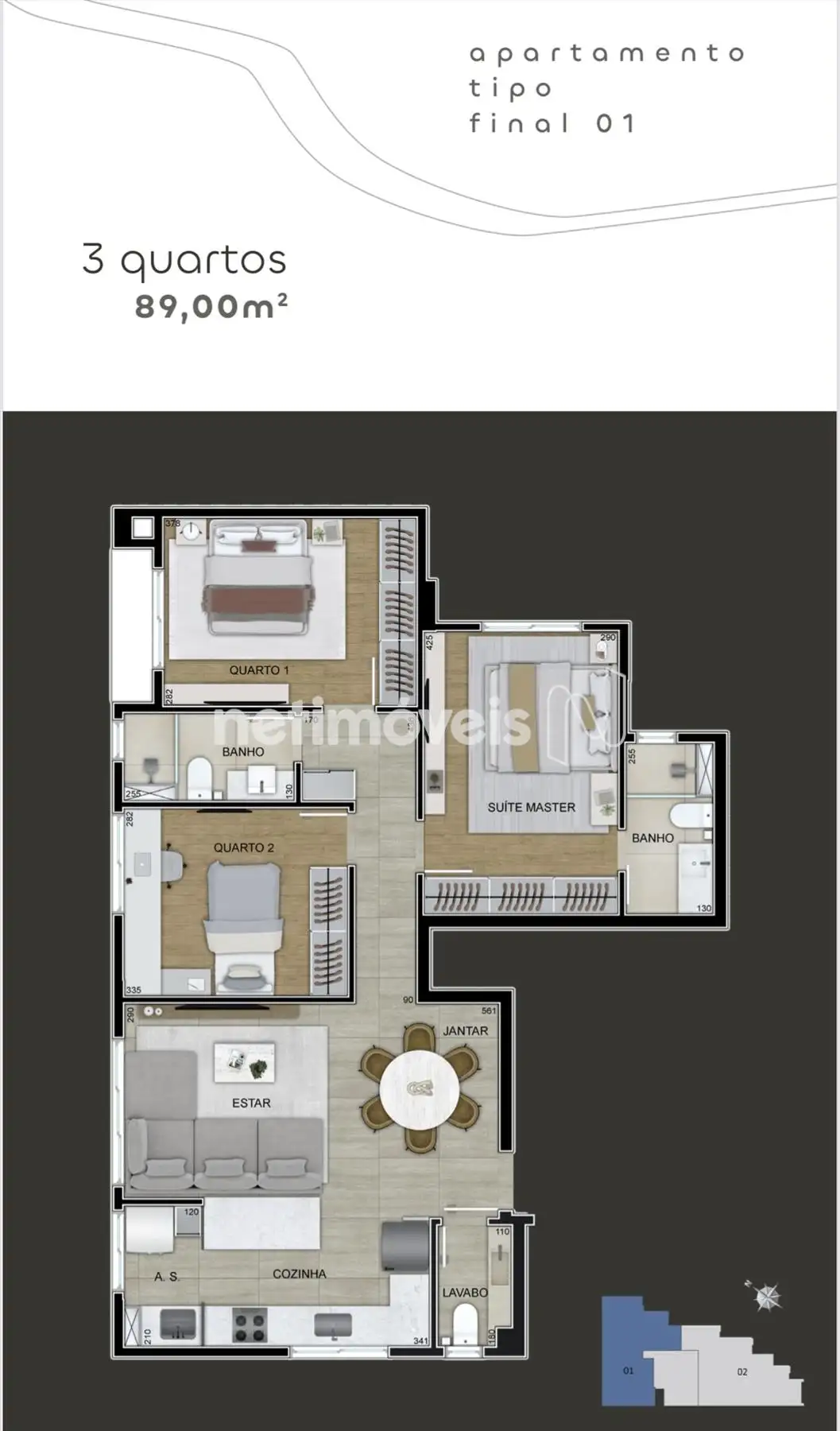 Área de lazer completa: Piscina, salão de festas, espaço gourmet, academia.