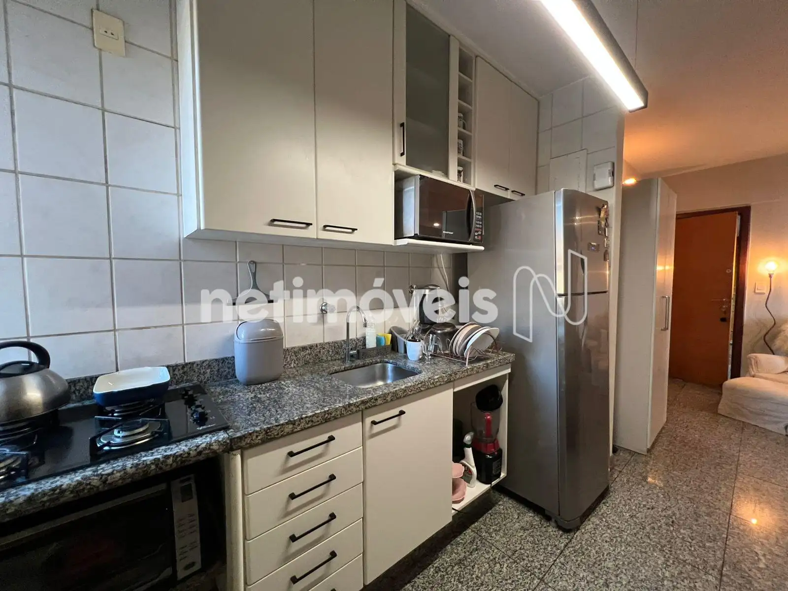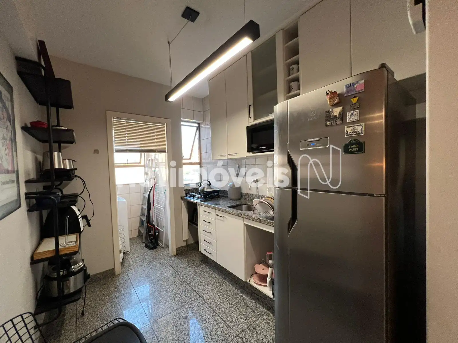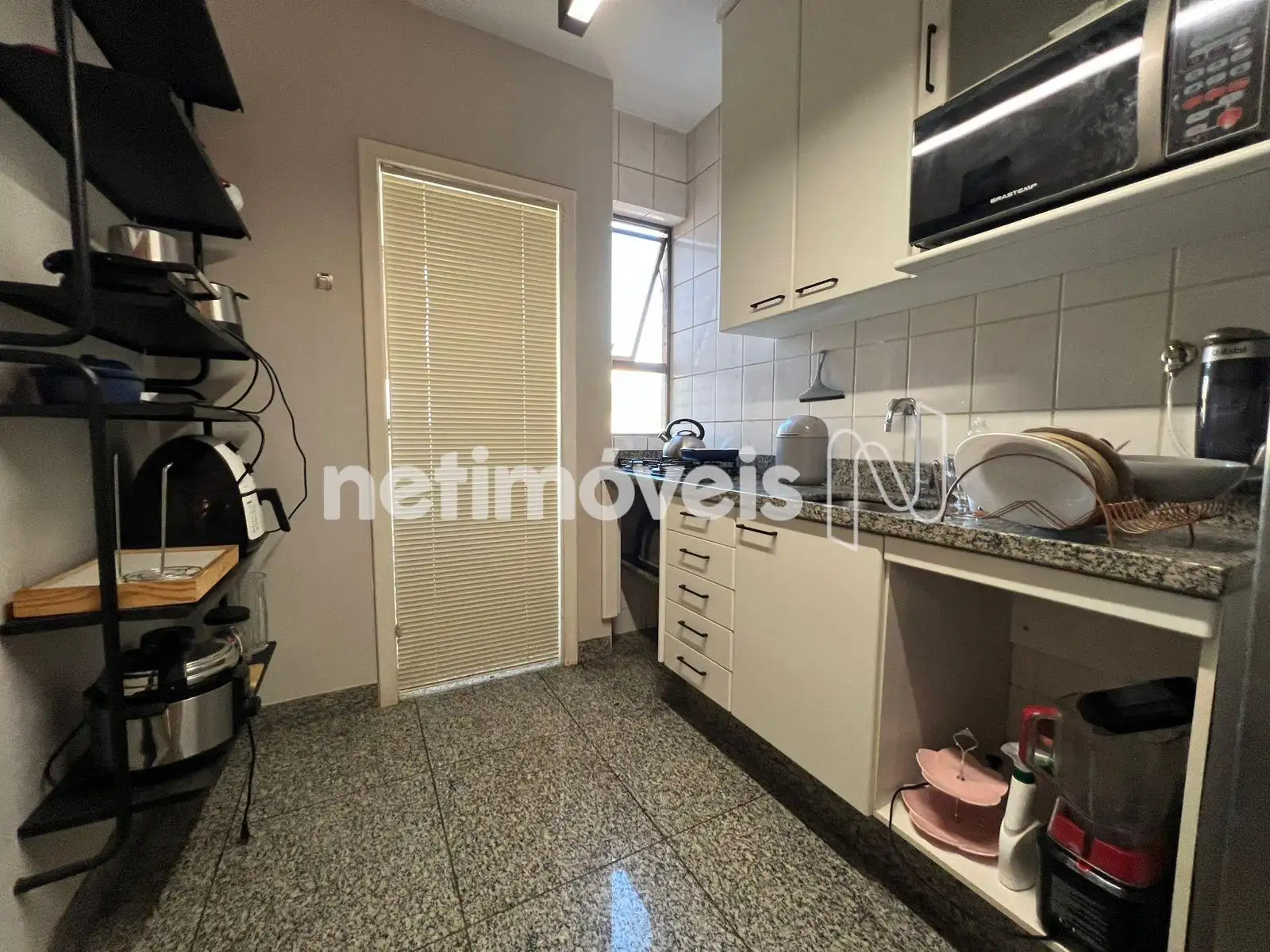 - Cozinha planejada com piso e bancada em granito.