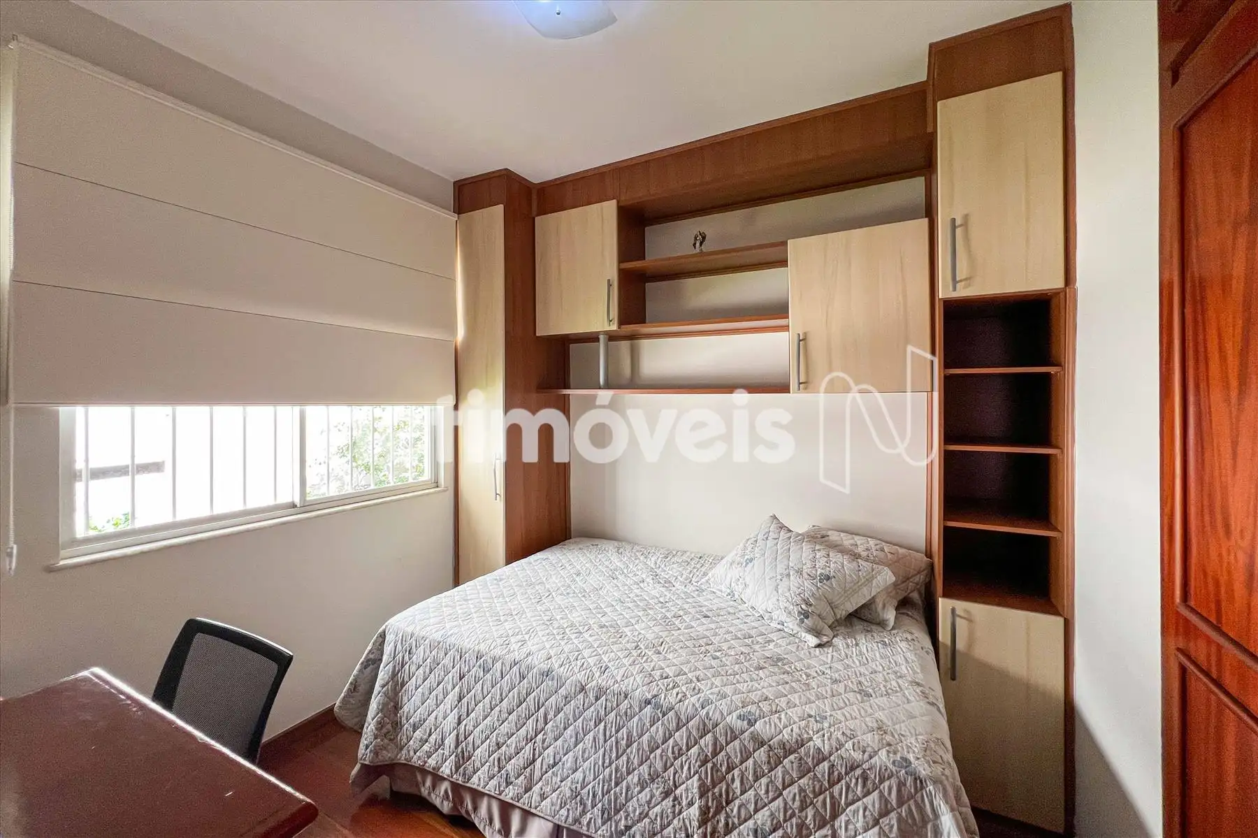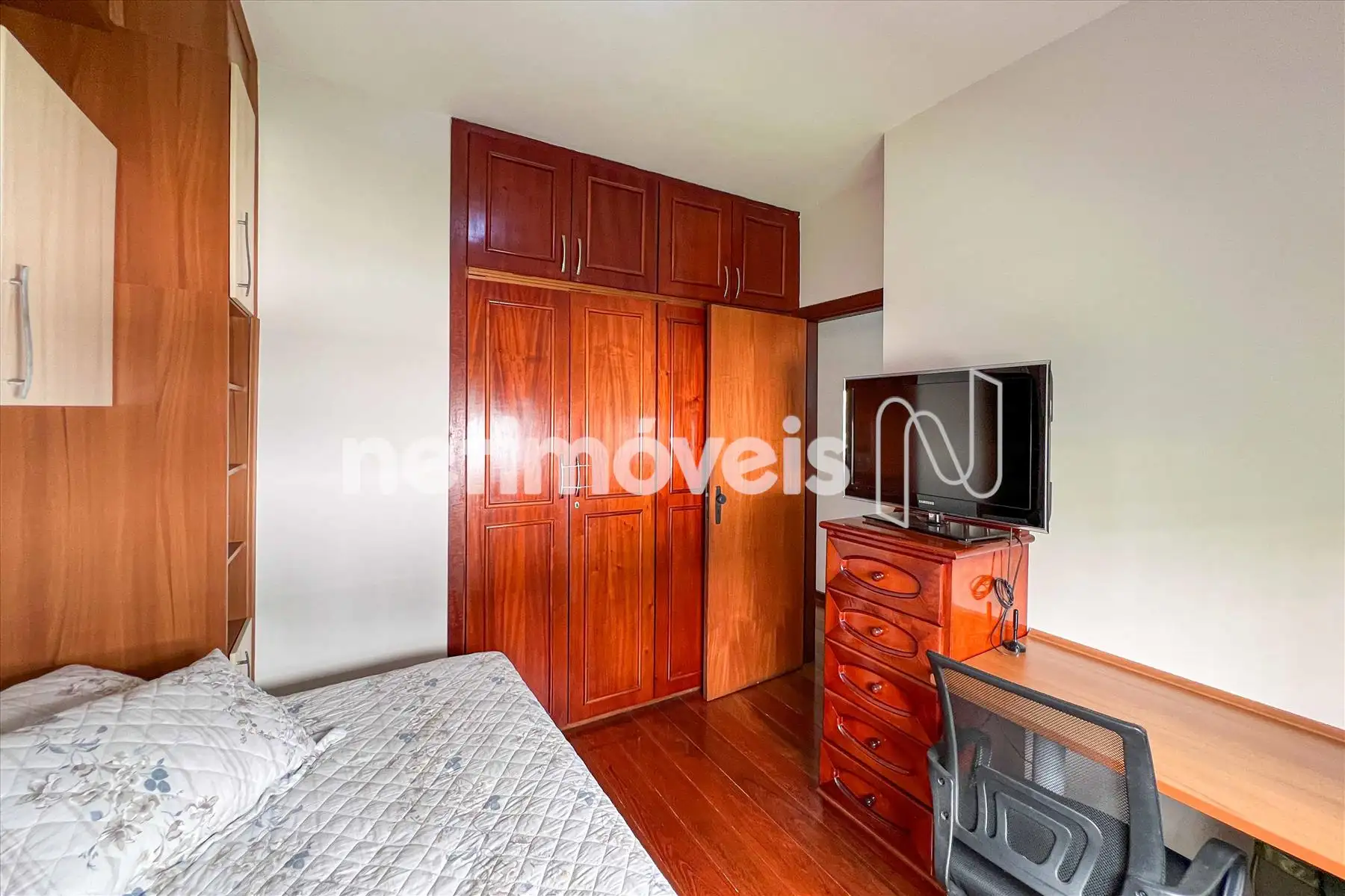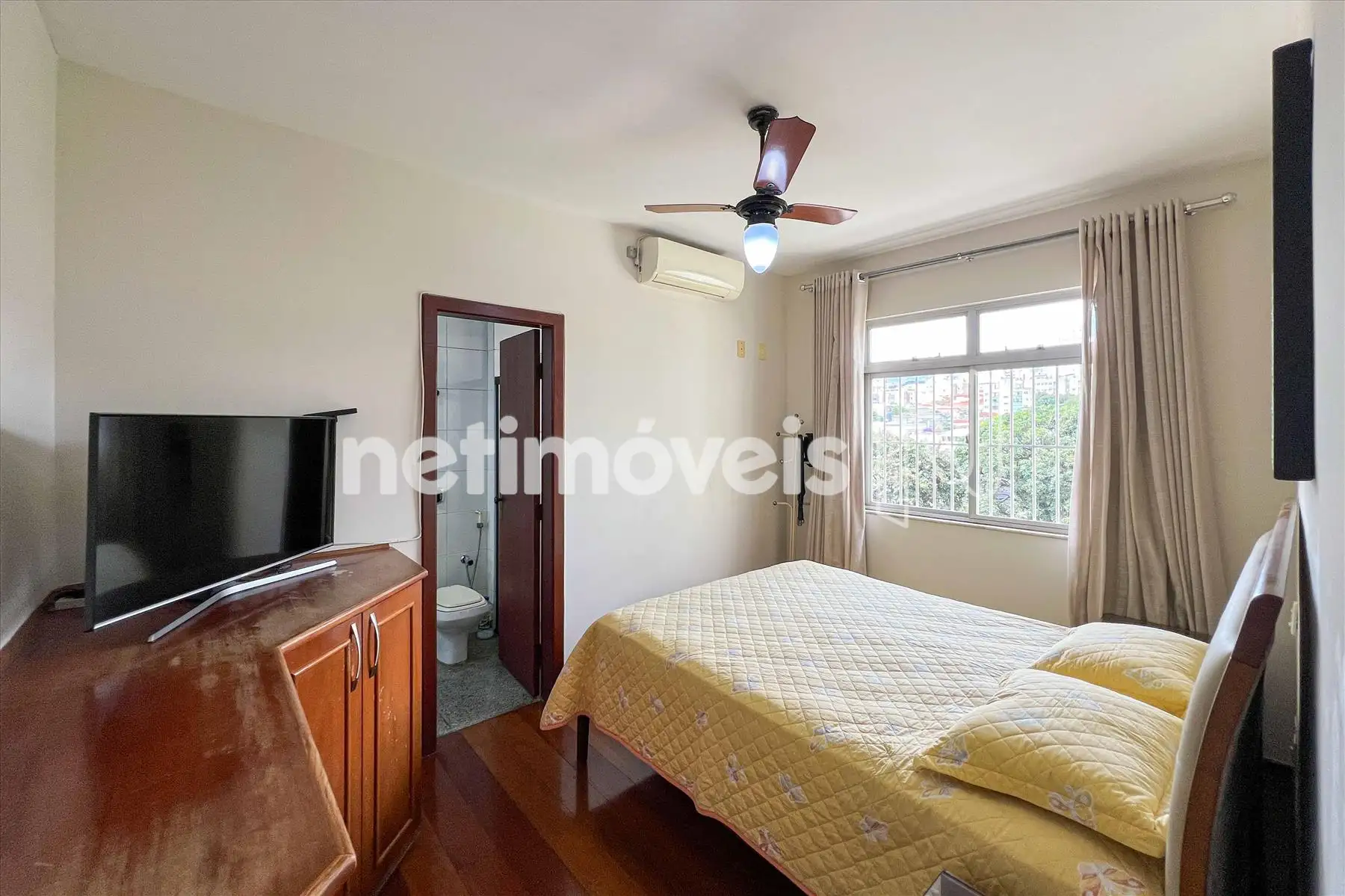 4 quartos amplos, todos com armários, grades nas janelas, piso em tábua corrida, (sendo um suíte, com armários, banheiro suíte com piso e bancada em granito, armários, Box em vidro temperado, chuveiro elétrico, entilador de teto, ar condicionado)
