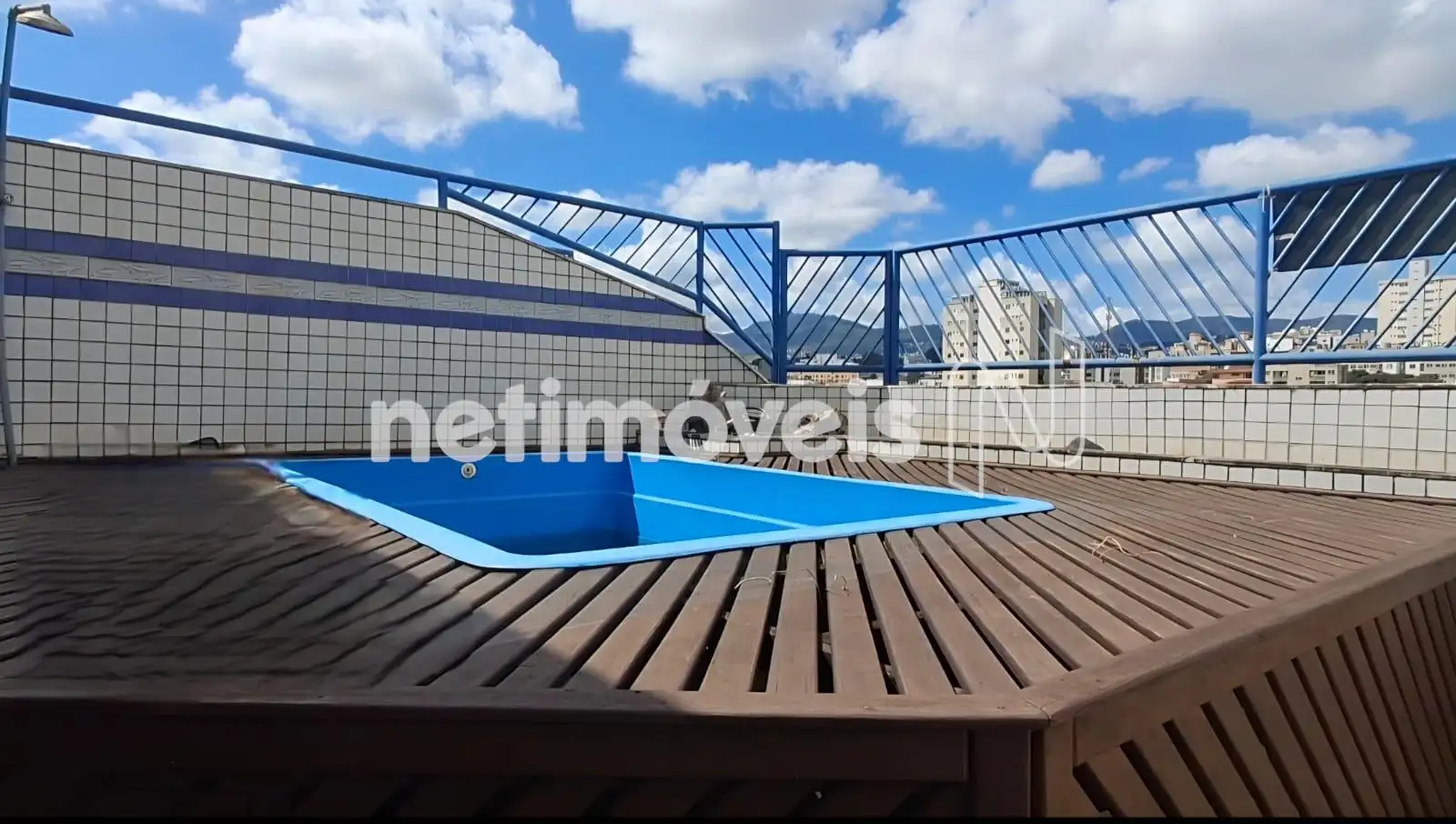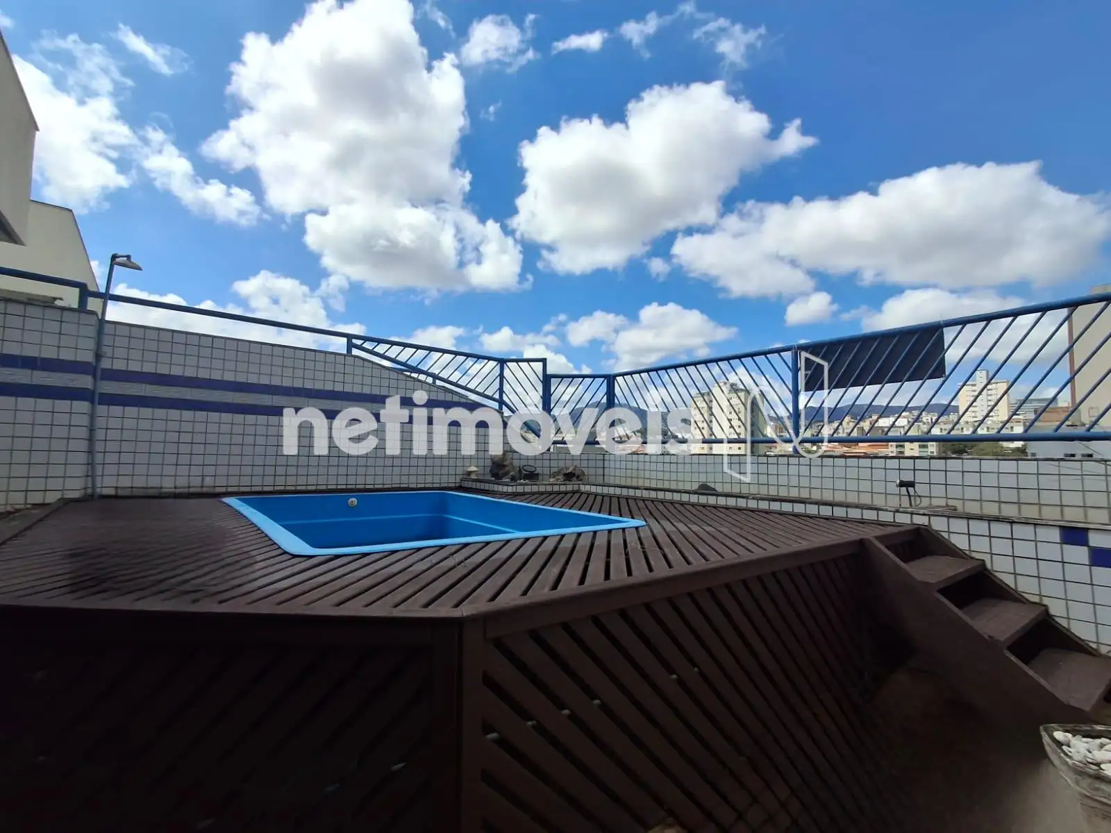 Piscina com Deck e máquina de filtragem.