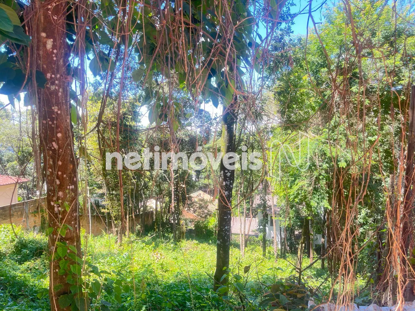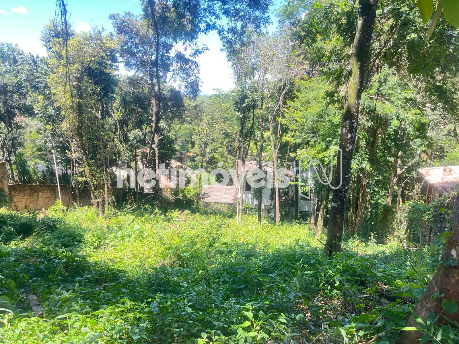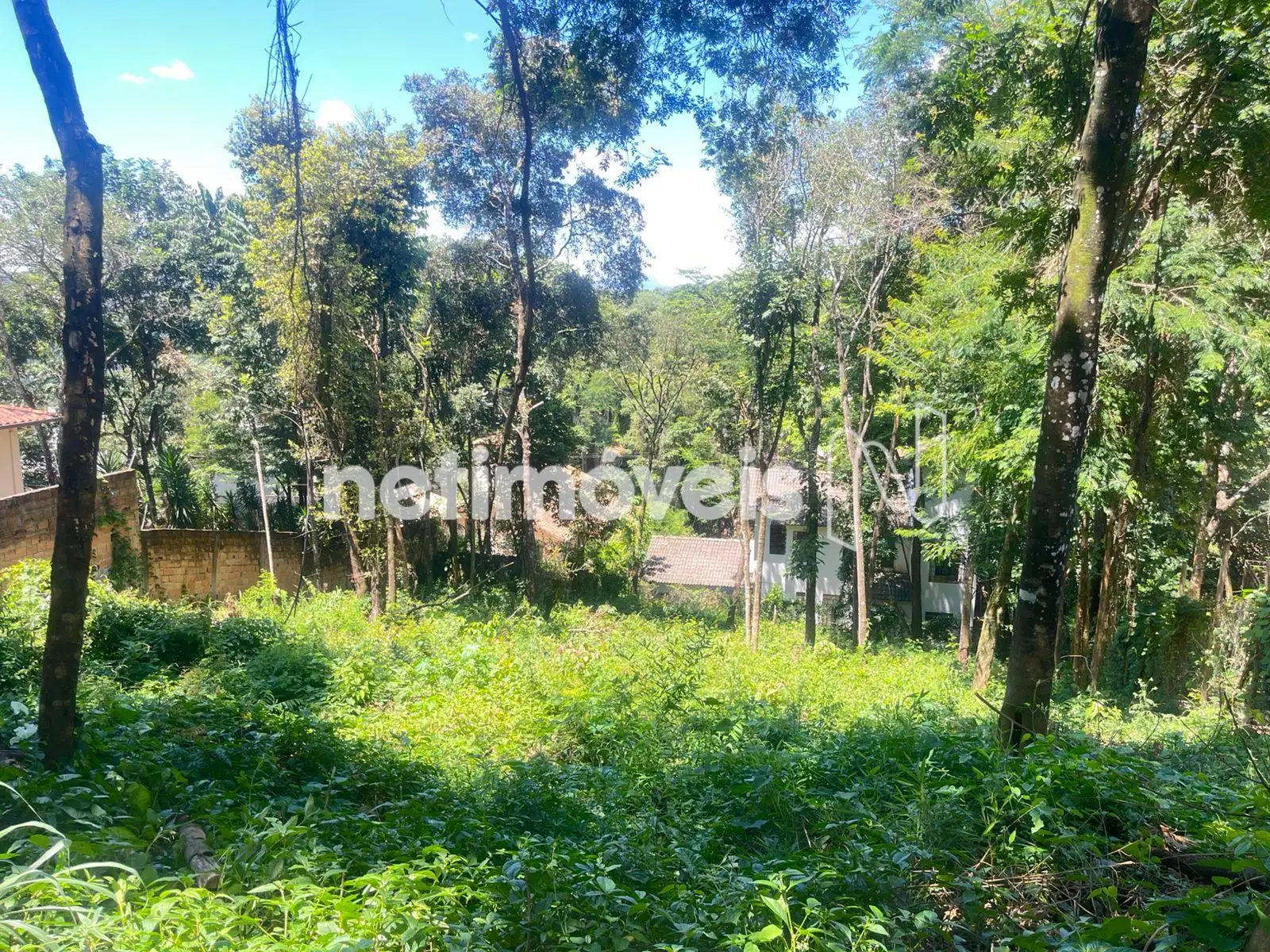 Terreno em leve declive. Casas ao redor.