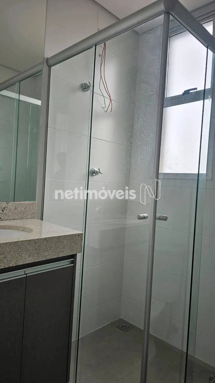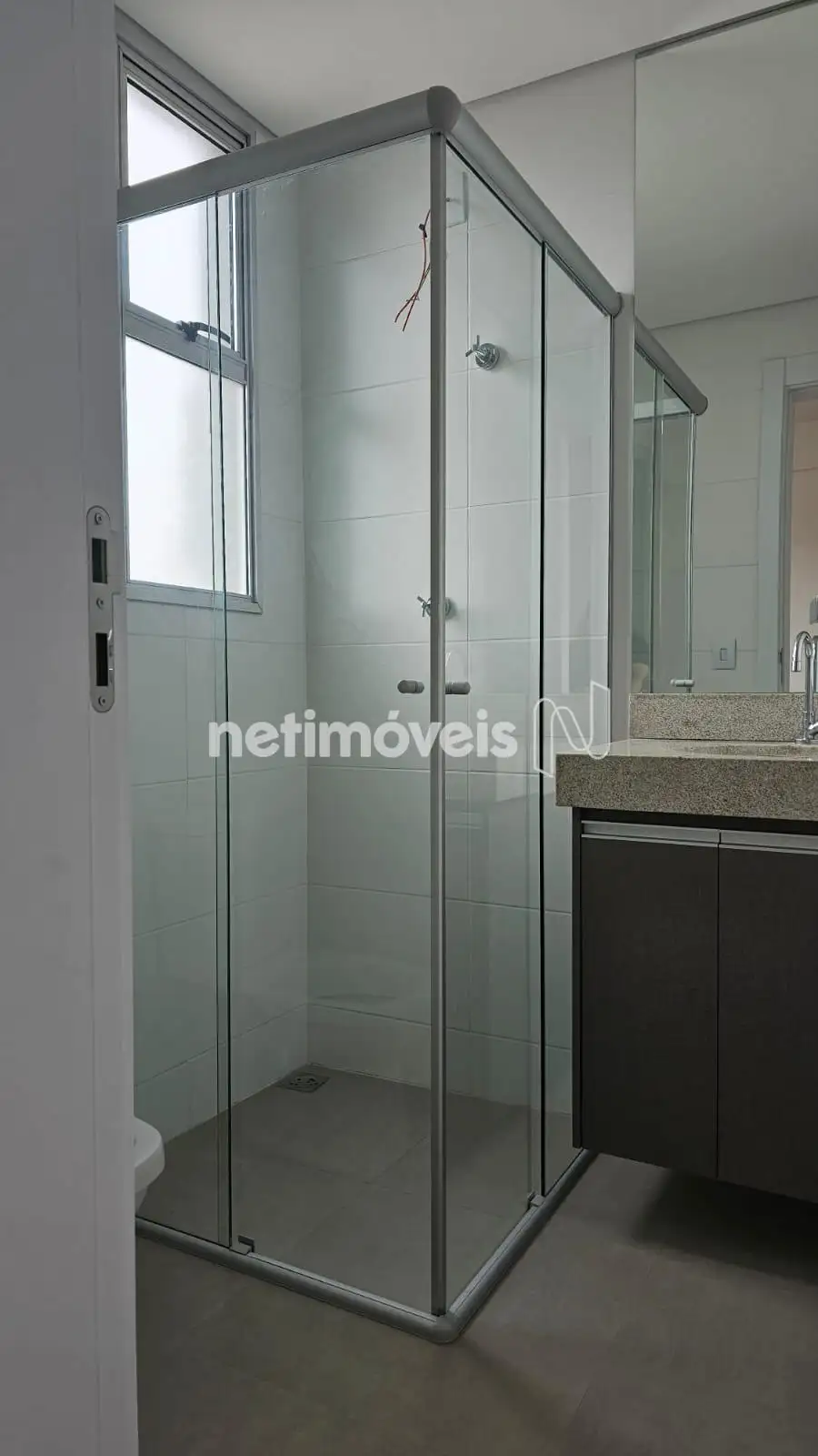 SUÍTE COM ARMÁRIO, VIDRO TEMPERADO, ESPELHO, BANCADA EM GRANITO.