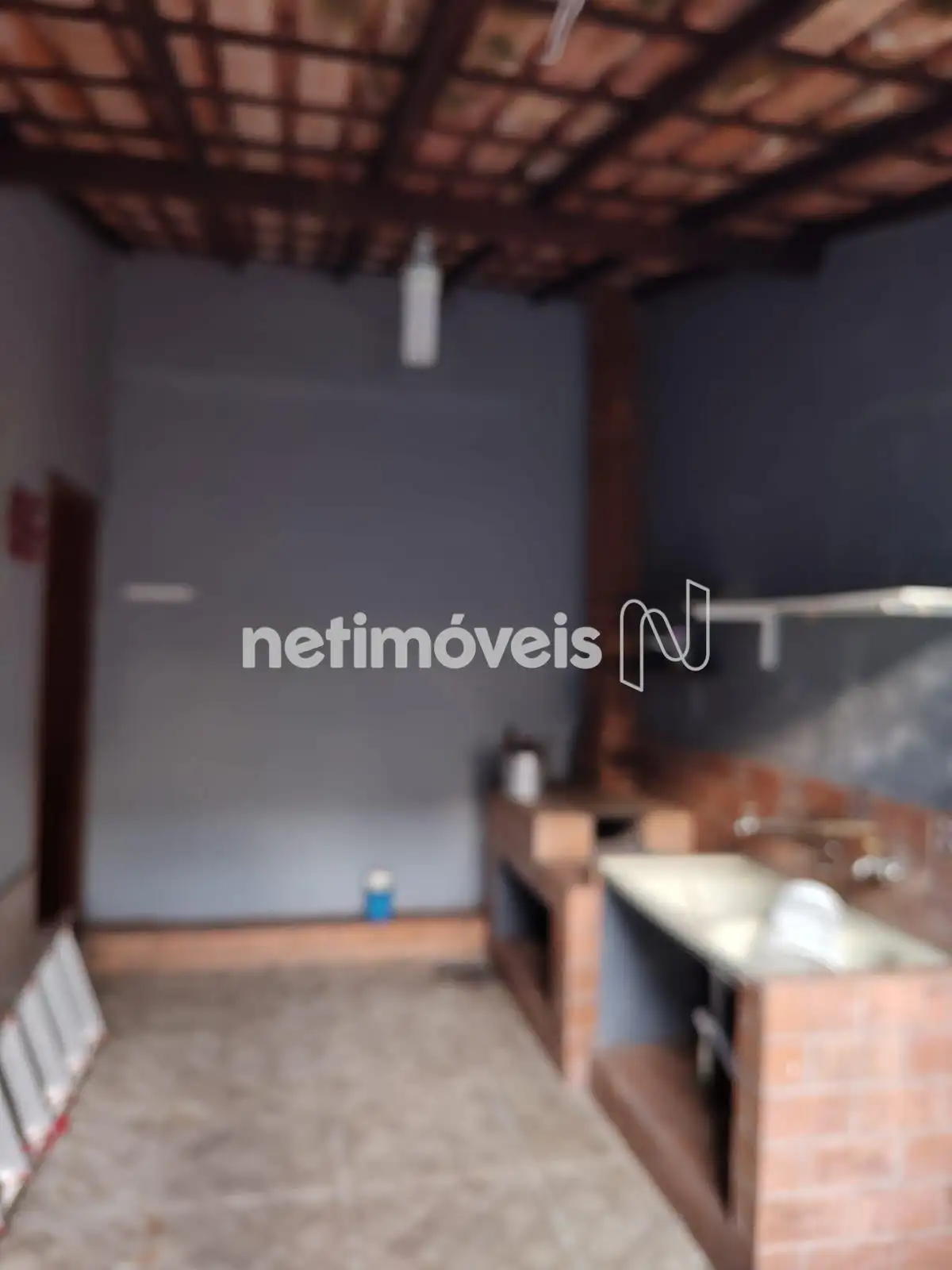 Cozinha externa com fogão à lenha.