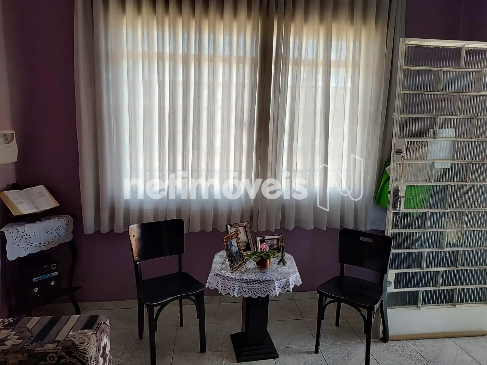 Sala de estar bem arejada e iluminada, com alpendre. piso em cerâmica.