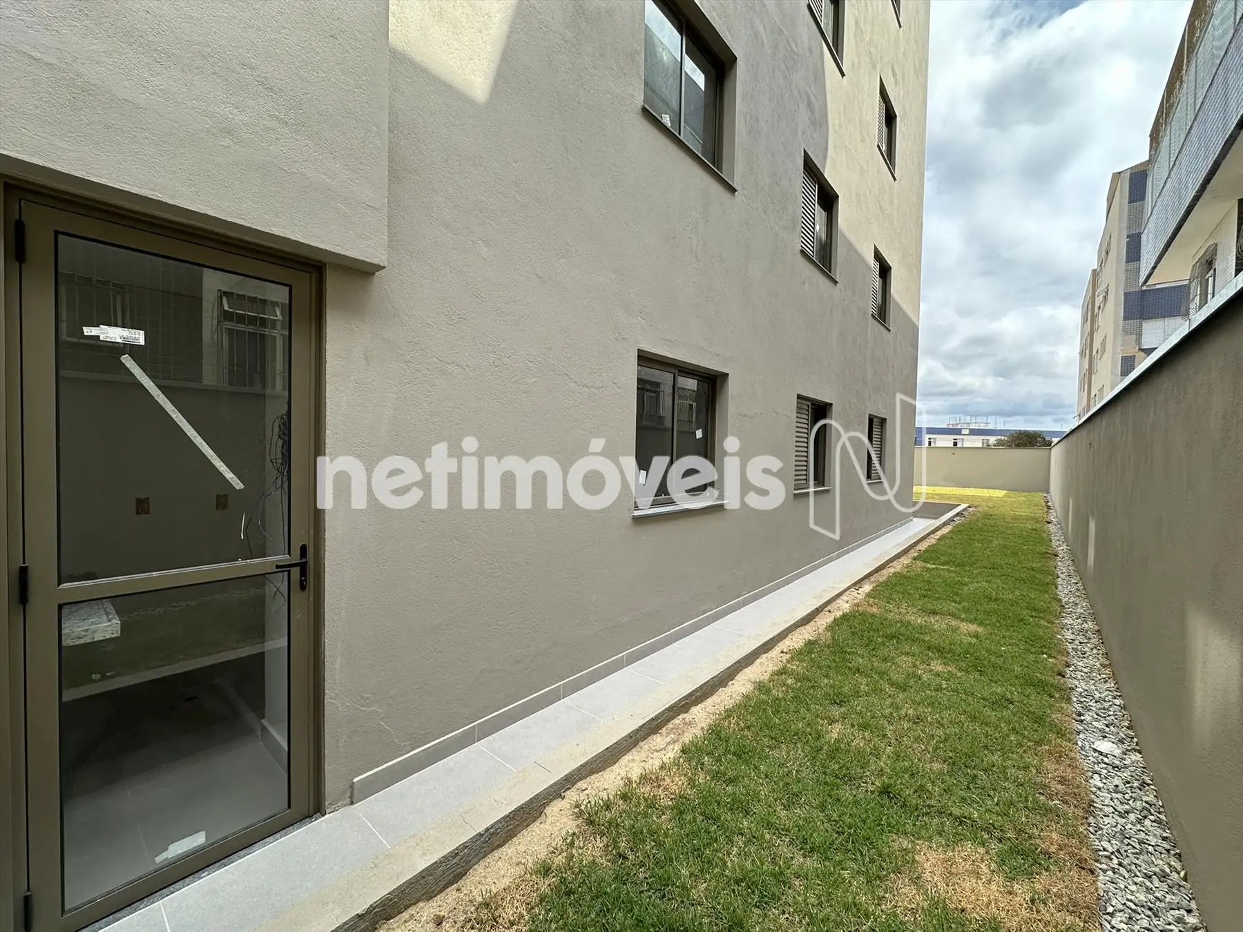 Prédio novo, revestido em textura, elevador, hall social, 2 unidades por andar.