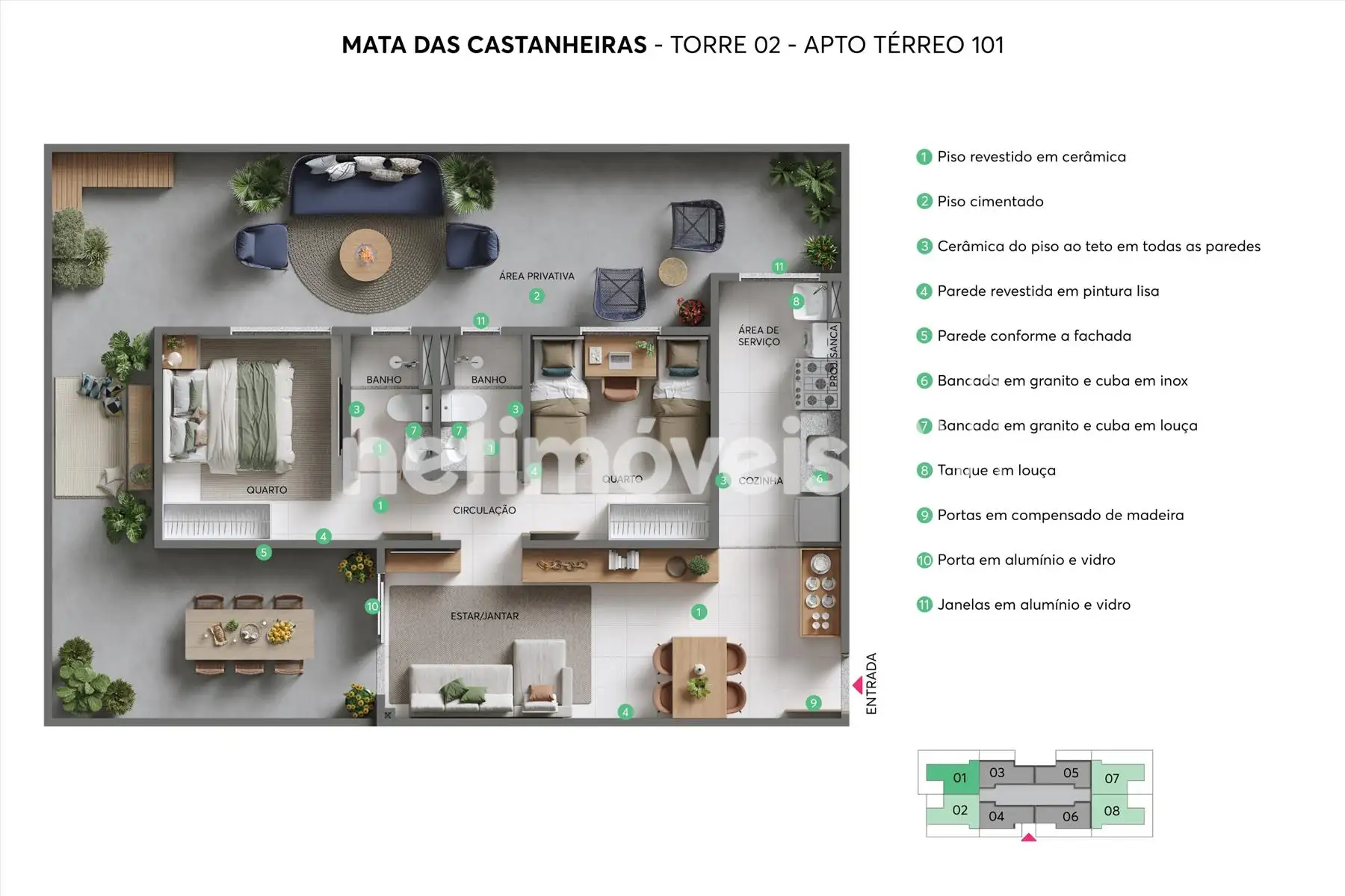 Prédio: Empreendimento MRV, com estacionamento de vagas demarcadas, vagas para para PCD, elevador, área de lazer com salão de festas, espaço gourmet, vestiários, piscina infantil e adulto, playground, bicicletário, gazebo, redário, pet place, espaço funcional, previsão de portaria 24 horas, gás canalizado e previsão de água individualizada.