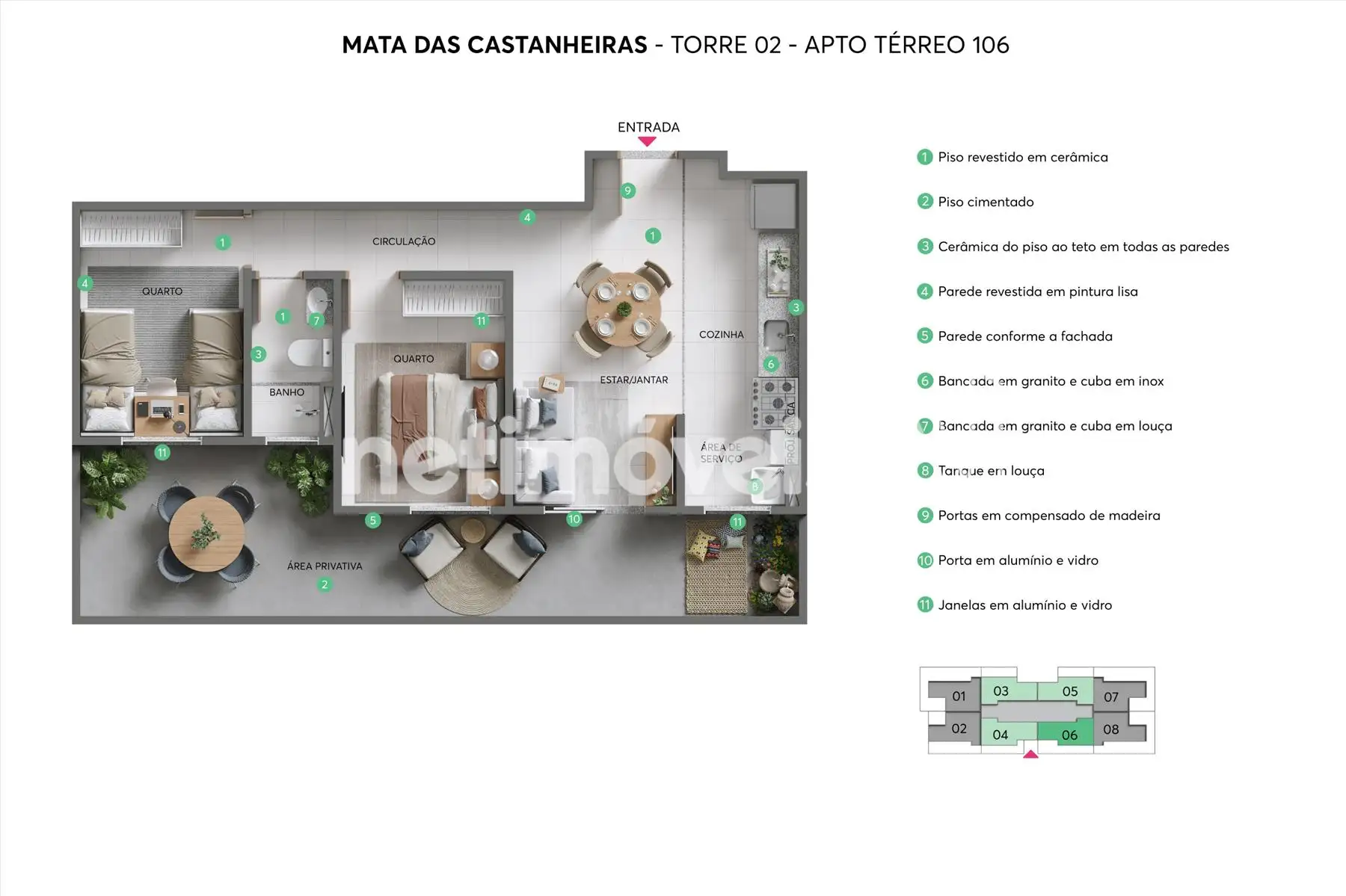 Prédio: Empreendimento MRV, com estacionamento de vagas demarcadas, vagas para para PCD, elevador, área de lazer com salão de festas, espaço gourmet, vestiários, piscina infantil e adulto, playground, bicicletário, gazebo, redário, pet place, espaço funcional, previsão de portaria 24 horas, gás canalizado e previsão de água individualizada.