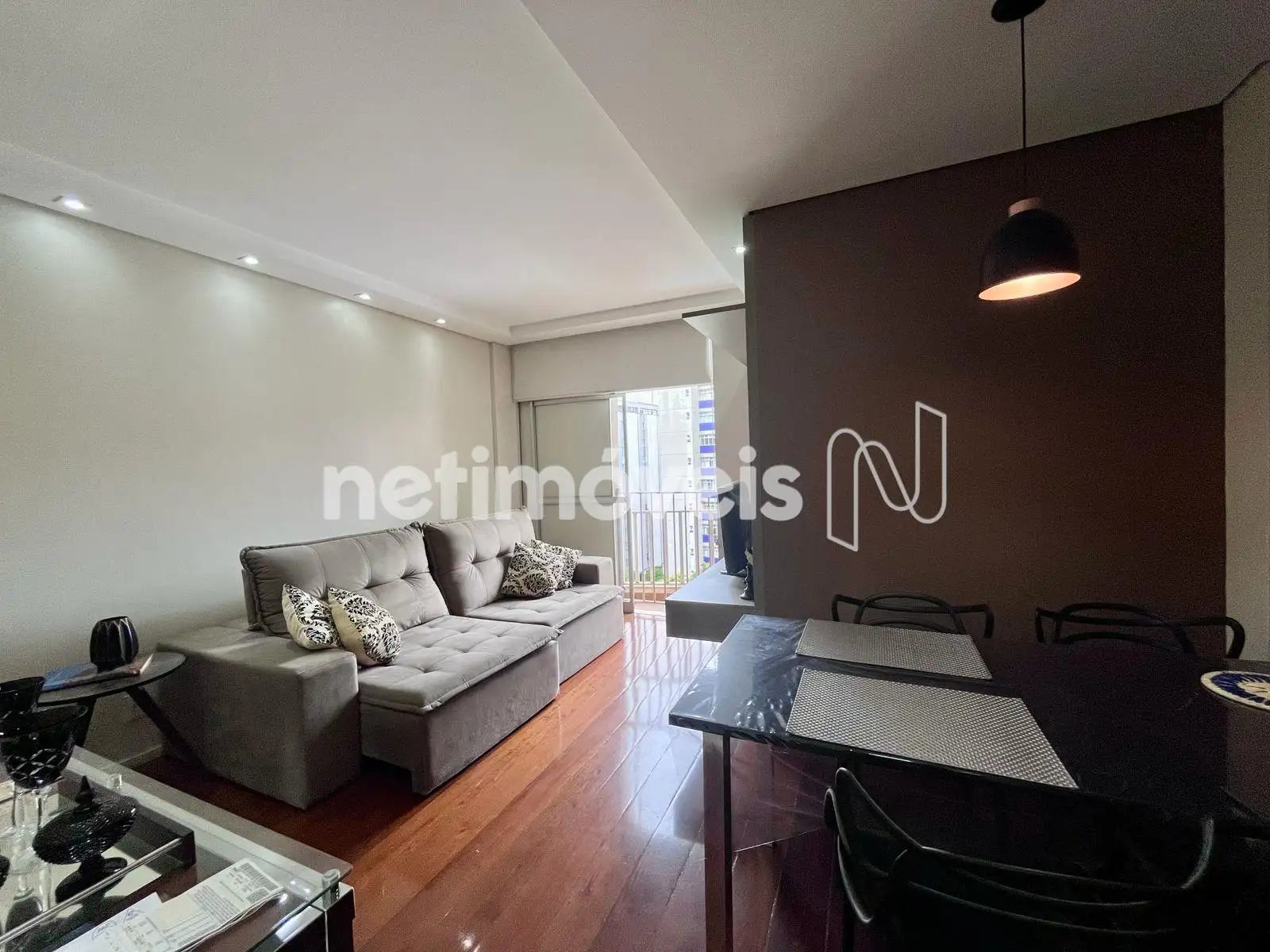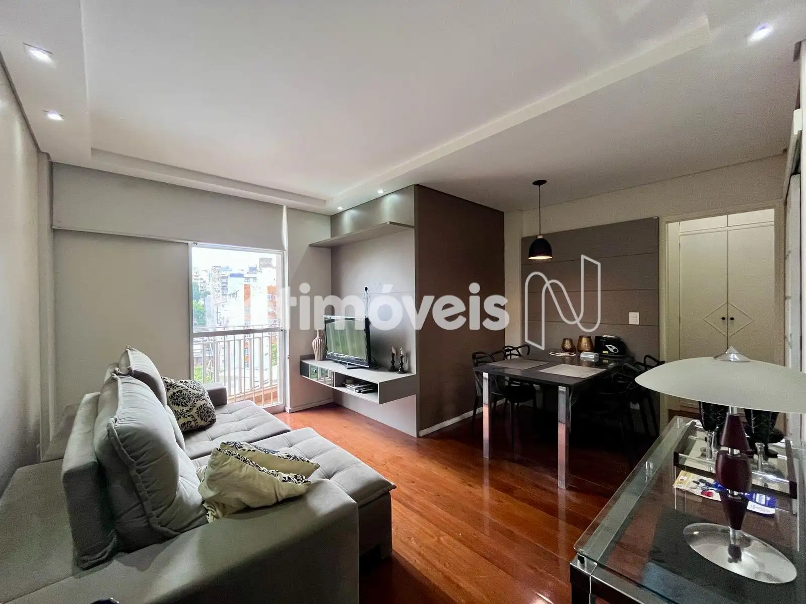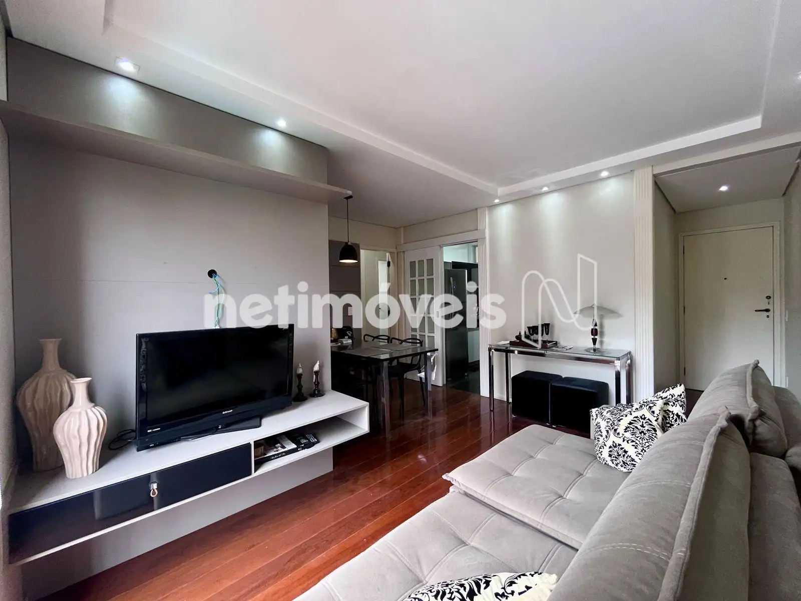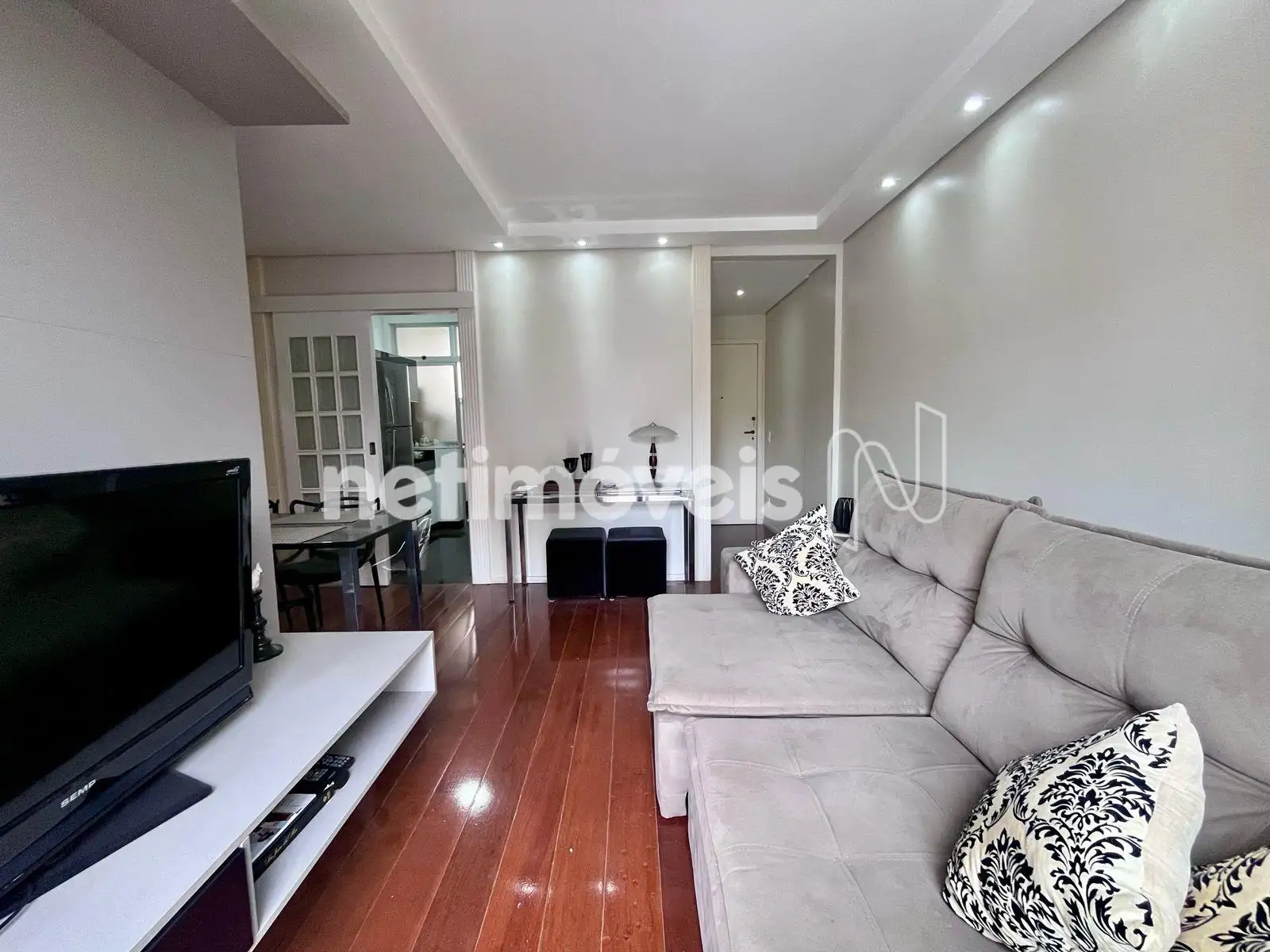 Apartamento espaçoso com aproximadamente 80m², com sala para 02 ambientes e sacada, com piso em tábua corrida, com rebaixamento de teto e iluminação;