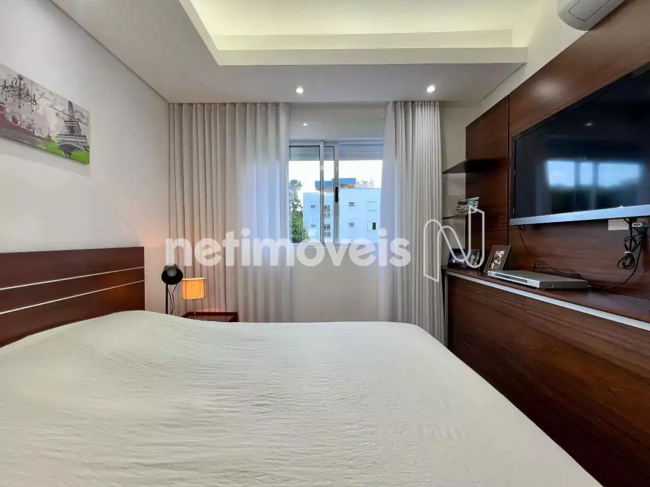 3 Quartos com armários, sendo suíte com ar-condicionado e cortinas