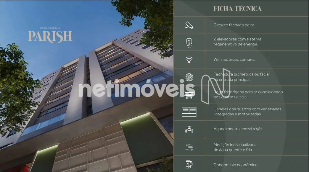 O Edifício Maria Sgarella Parish é uma joia no melhor do bairro. Projeto moderno e imponente. Acabamentos de alto padrão que refletem qualidade e bom gosto. Aptos espaçosos e área de lazer. Descubra o que é viver bem no Parish! Experimente o melhor da vida em um ambiente que une conforto e diversão. Um sofisticado espaço gourmet, piscina, playground p/ as crianças, um moderno fitness para você, pet place para alegria de seu doguinho e muito mais. Explore agora todo nosso pilotis. A planta do Parish é incrívelmente bem projetada. Espaços muito bem resolvidos p/ aproveitar cada metro quadrado c/ ergonomia e praticidade. Amplo, bem acabado com materiais de alto padrão. Muita luz natural e bem ventilado. Os aptos contam c/ 3 configurações: Tipo, Terrace c/ área privativa e Cobertura. Você também pode optar por uma planta c/ sala extendida. Circuito fechado de tv, 2 elevadores c/ sistema regenerativo de energia, Wifi nas áreas comuns, Fechadura biométrica ou facial na entrada principal, Rede frigorígena p/ ar condicionado nos quartos, sala, Janelas dos quartos c/ venezianas integradas e motorizadas, Aquecimento central a gás, Medição individualizada de água quente e fria, Condomínio econômico. Quadra, Kids, Pet Place, Fitness, Piscina, Coworking, Espaço Gourmet, 2 vagas livres nº 01 e 02 Lazer, Sky Window