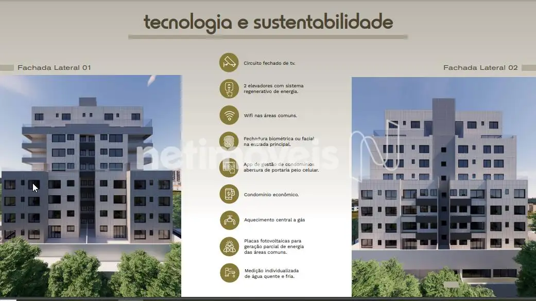 Fachada revestida. Várias opções de plantas. Lazer, Jardins, Circuito fechado de tv. 2 elevadores com sistema regenerativo de energia. Wifi nas áreas comuns. Fechadura biométrica ou facial na entrada principal. App de gestão de condomínios abertura de portaria pelo celular. Condomínio econômico. Aquecimento central a gás. Placas fotovoltaicas para geração parcial de energia das áreas comuns. Medição individualizada de água quente e fria. 2 vagas de garagem.