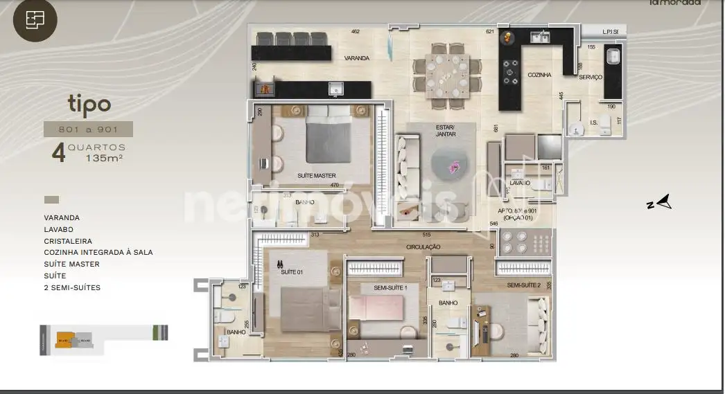 SUÍTE MASTER COM CLOSET SUÍTE COM CLOSET 2 SEMI-SUÍTES