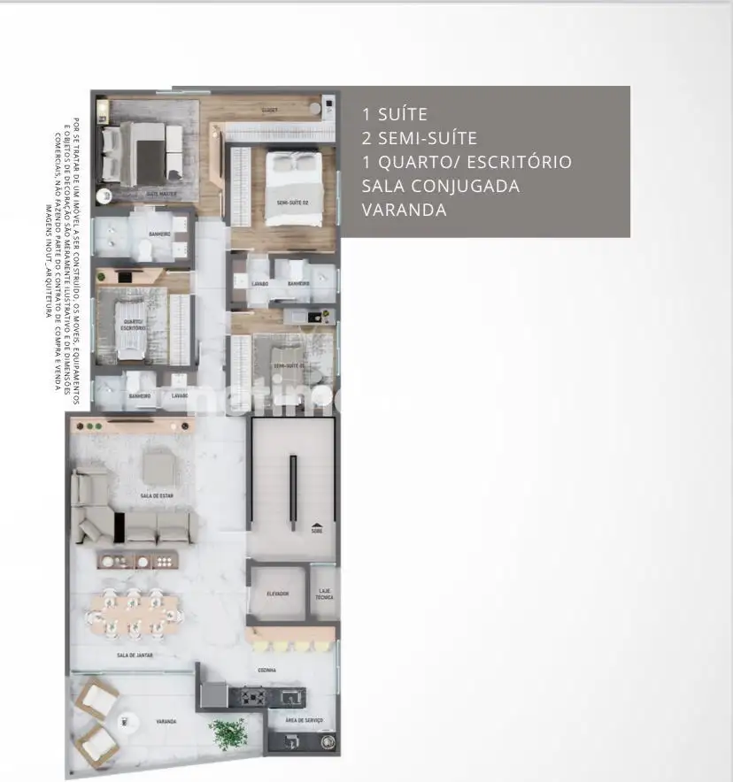 4 quartos, sendo 2 semi-suite, 1 suíte;