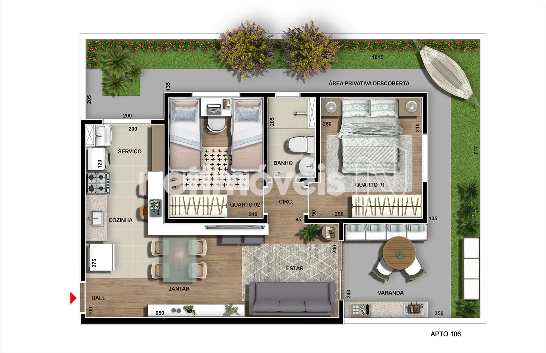 Área Privativa 2 Quartos Nova Pampulha 84m²