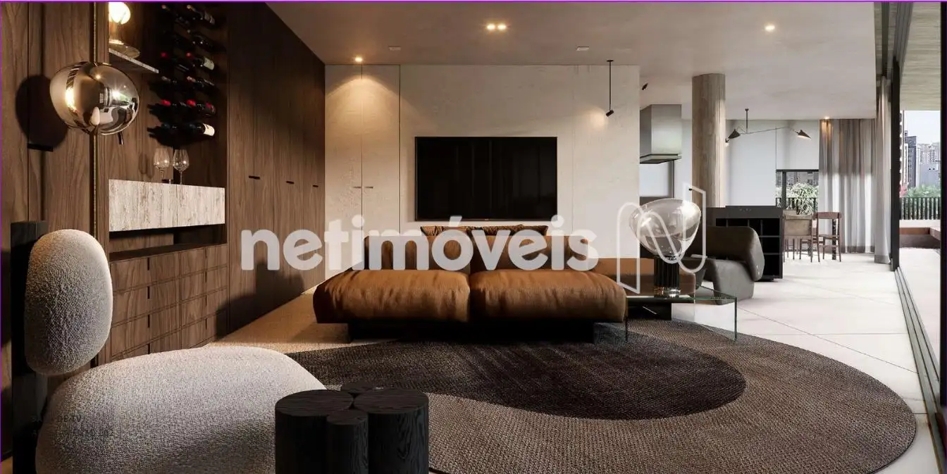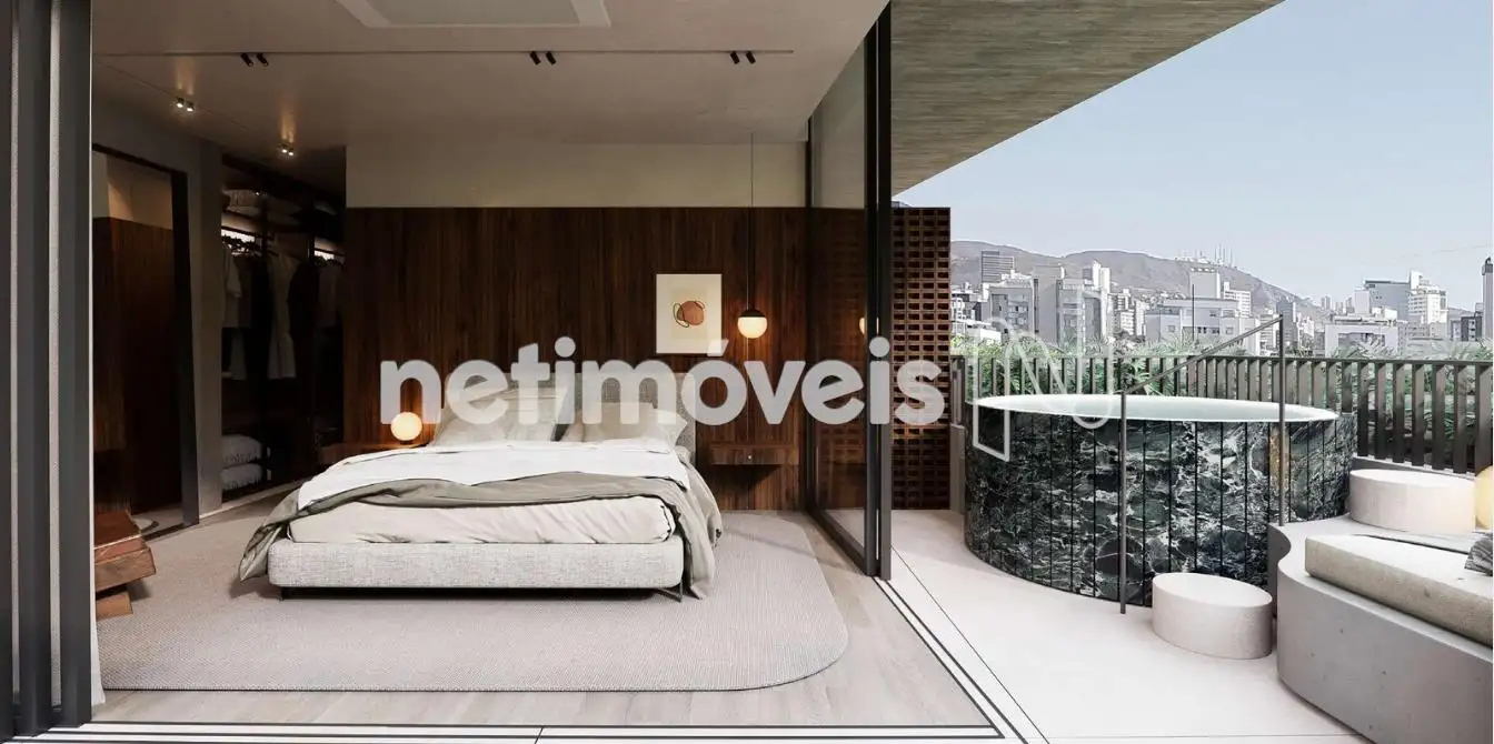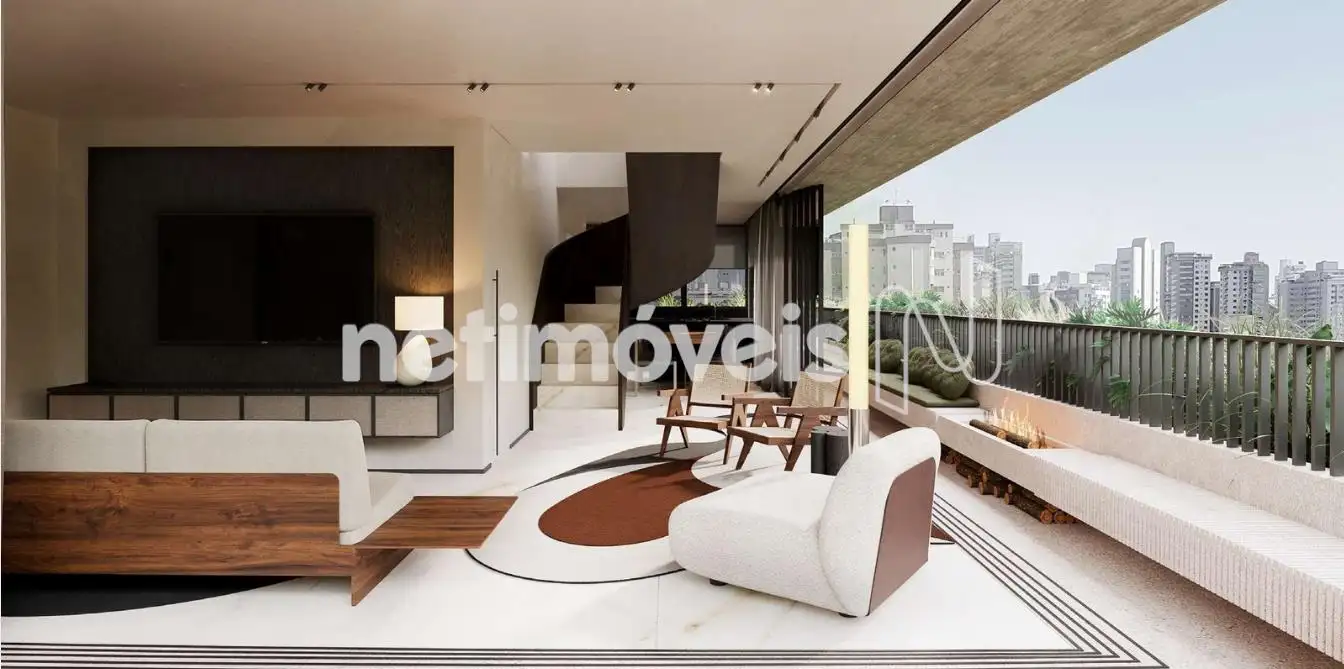 Amplas janelas do piso ao teto que se abrem para uma varanda que abraça todo o apartamento.