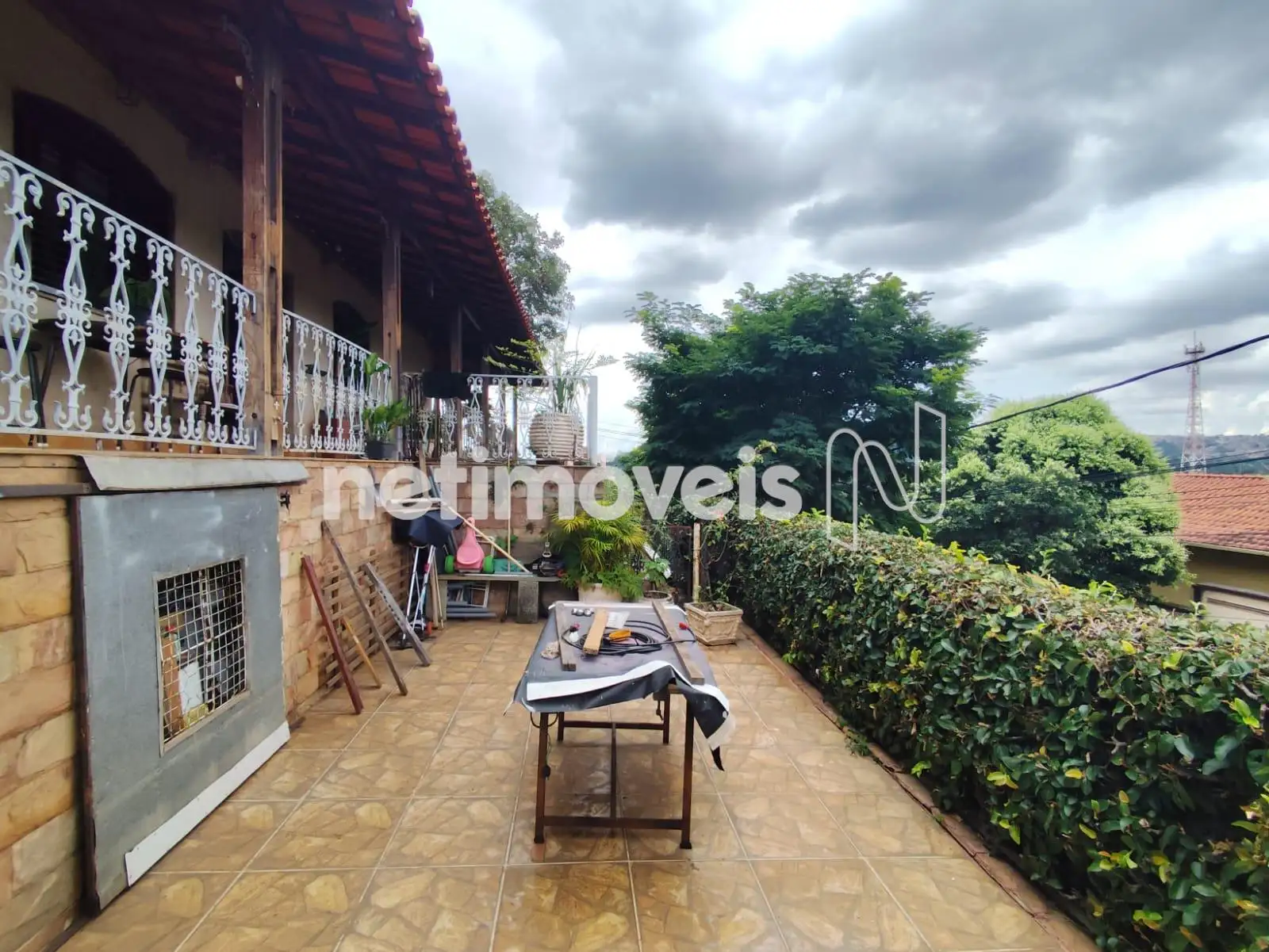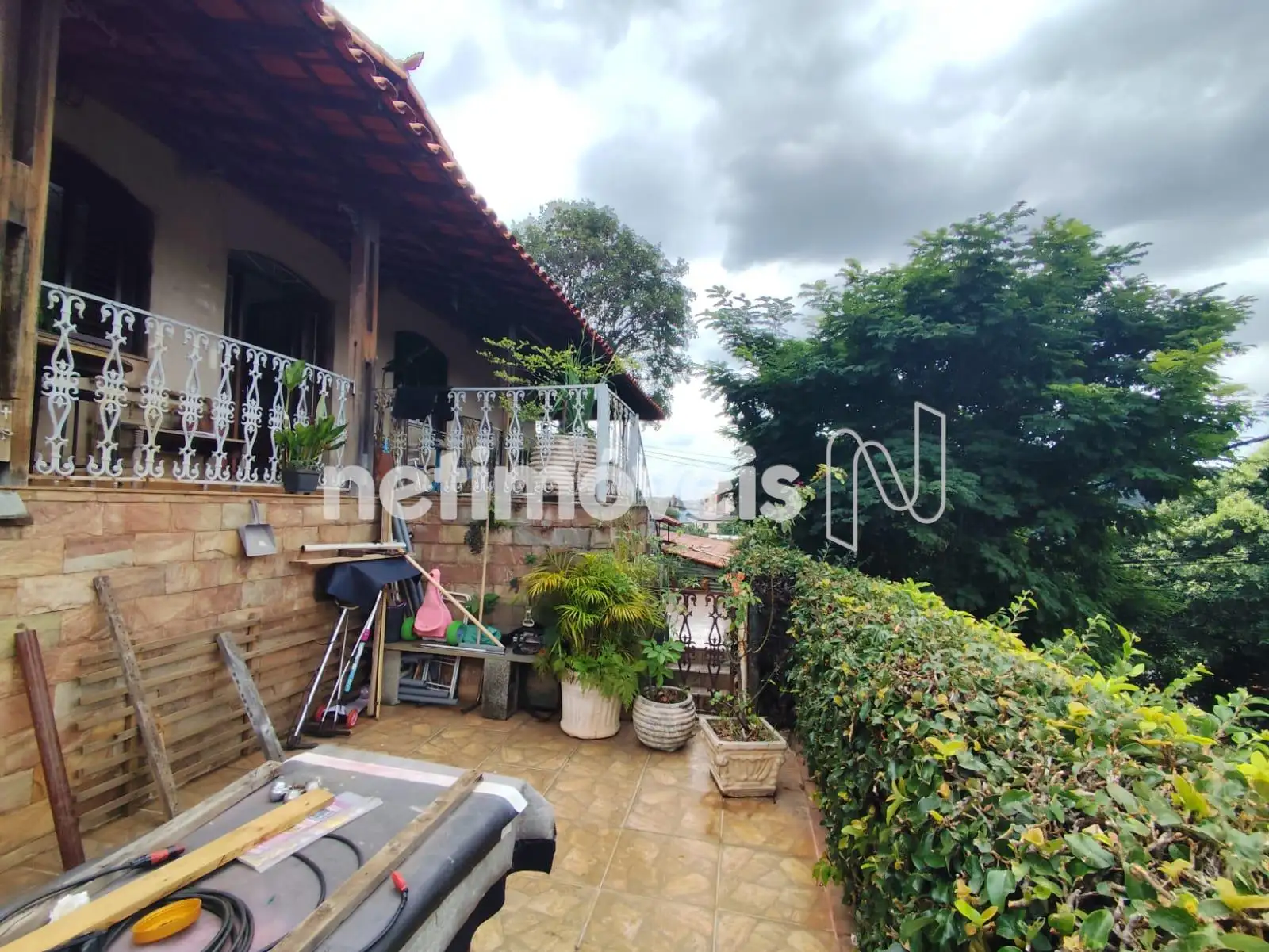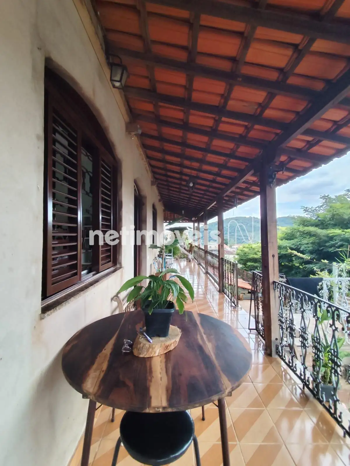Estilo colonial, com varanda em L.