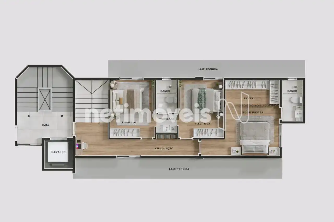 A cobertura possui 154 m², com acabamento de alto padrão e um projeto que privilegia o bem-estar e a funcionalidade. São 03 quartos, sendo 01 suíte, além de 04 banheiros ao todo e um lavabo. Acesso ao segundo pavimento por elevador.