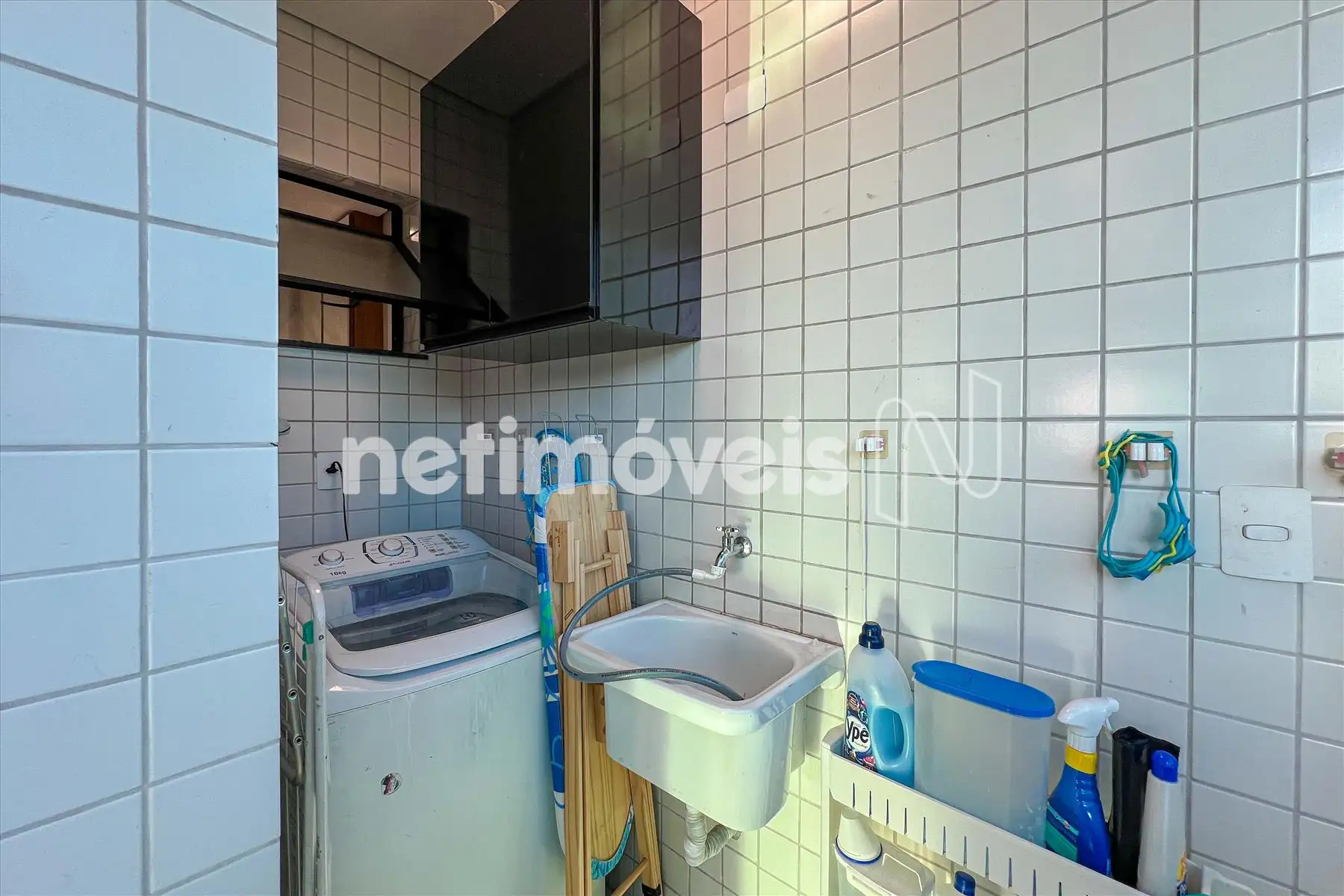 - Lavabo com piso em porcelanato , pia com bancada em granito , com armário .