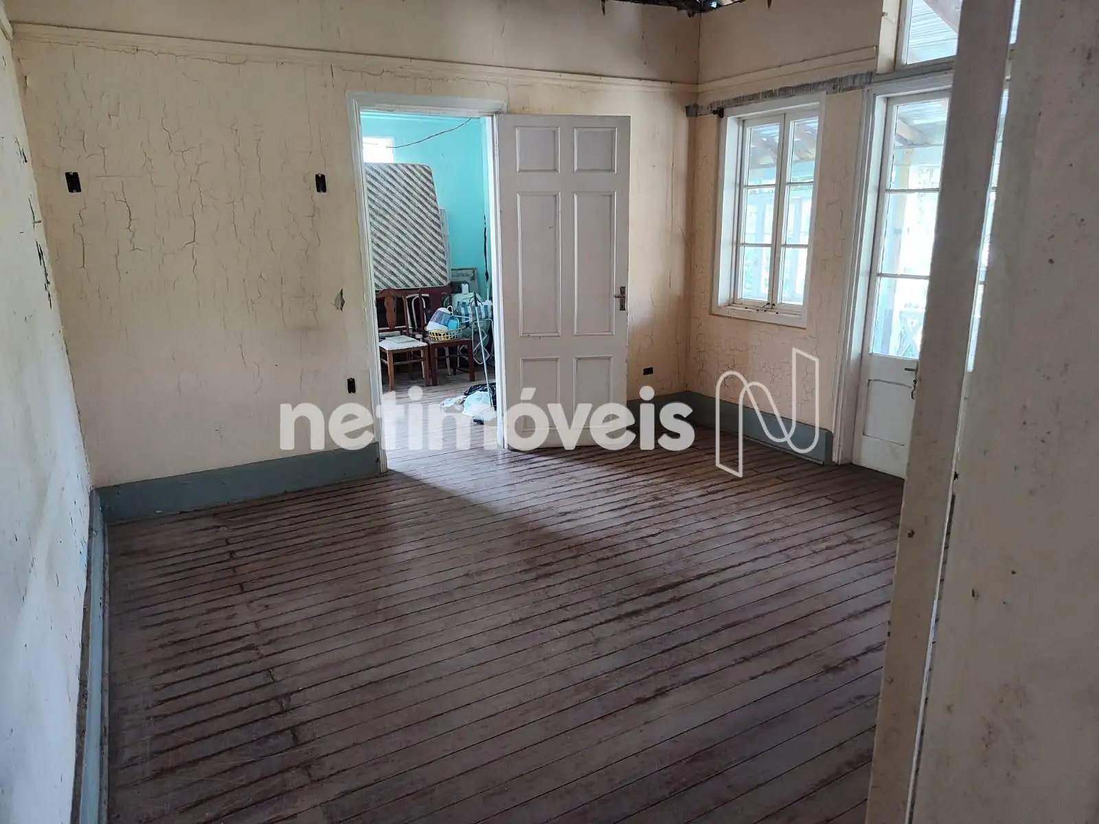 Casa com 02 salas sendo uma de estar e copa com piso em madeira de tábua corrida.