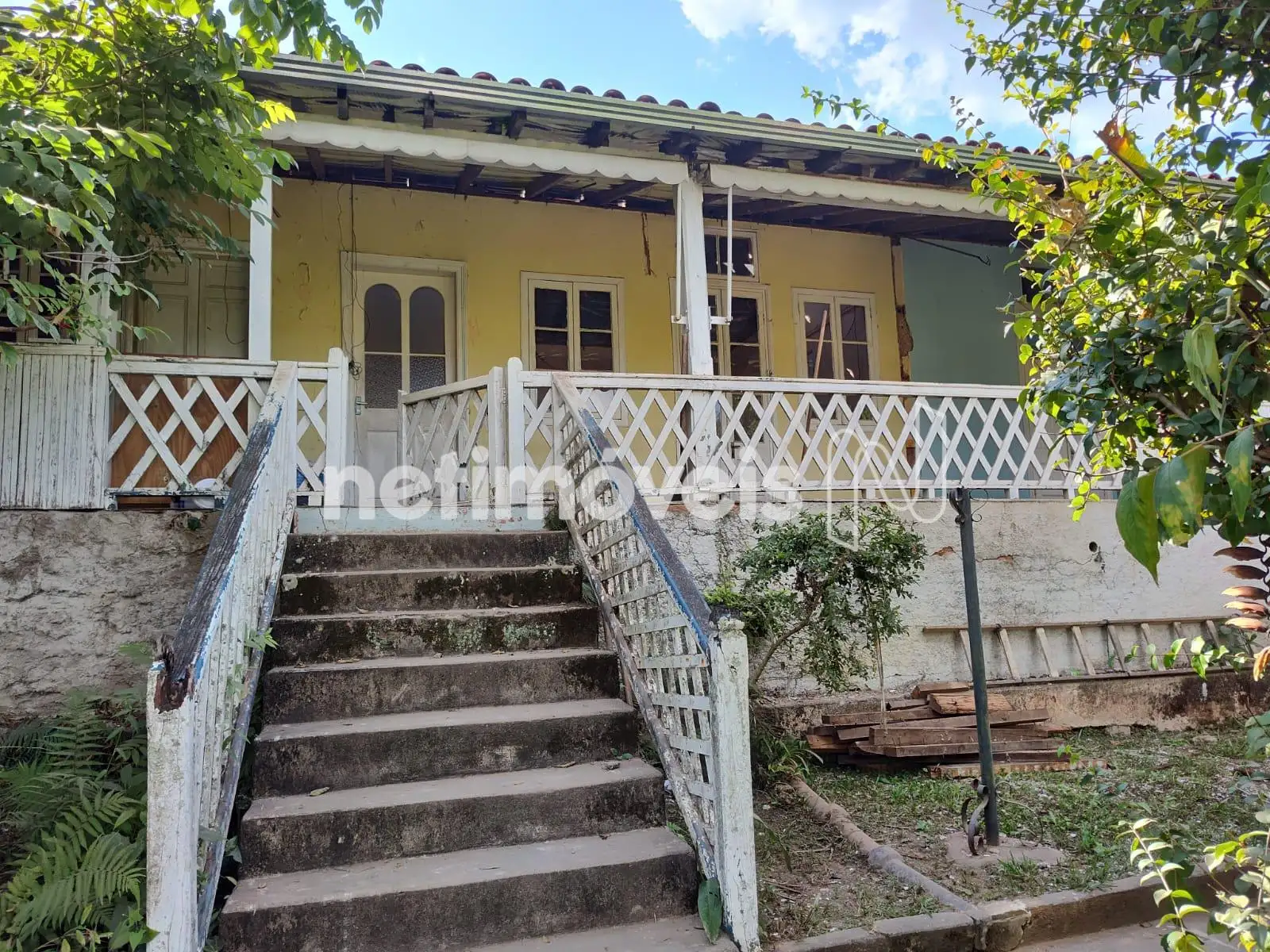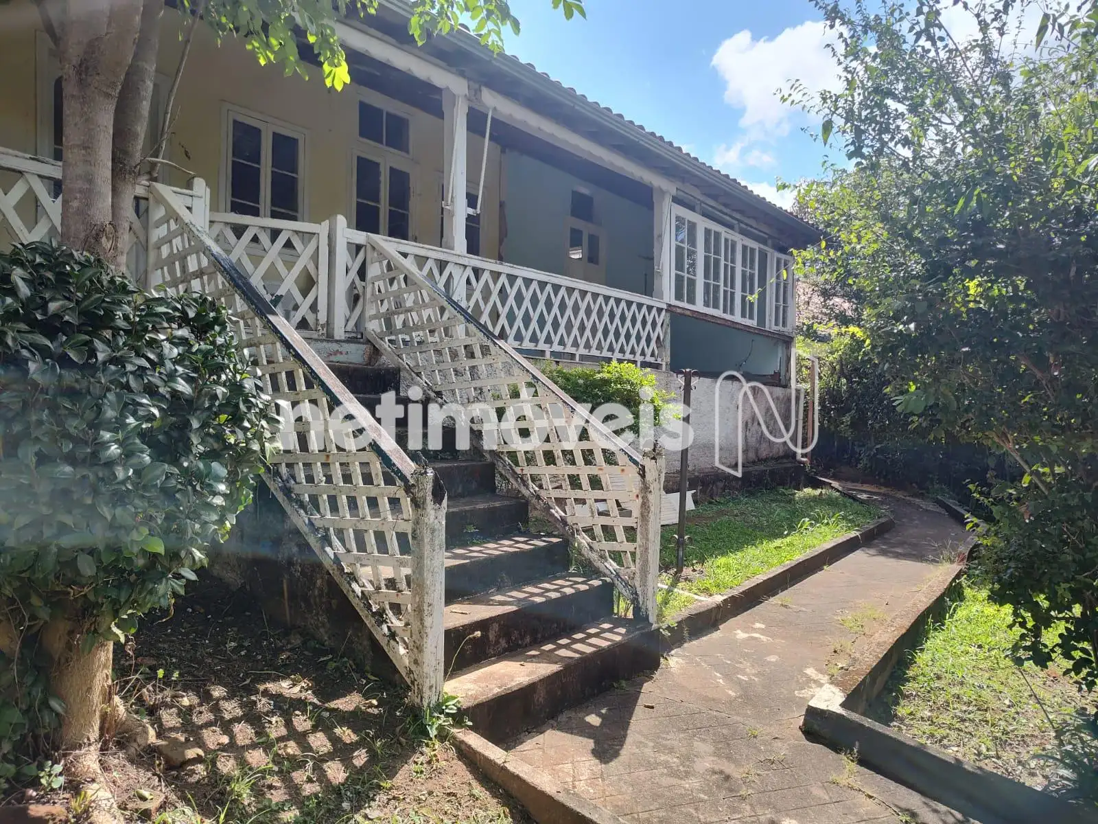 A varanda cercada de madeira laqueada, e piso de cerâmica, dando ar de estilo colonial dos anos 50.