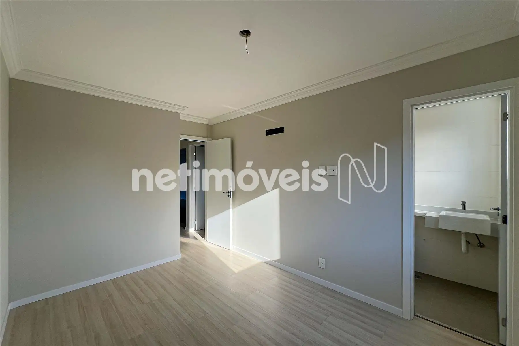 3 quartos com piso laminado em madeira, janelas em venezianas, sendo 1 quarto suíte,