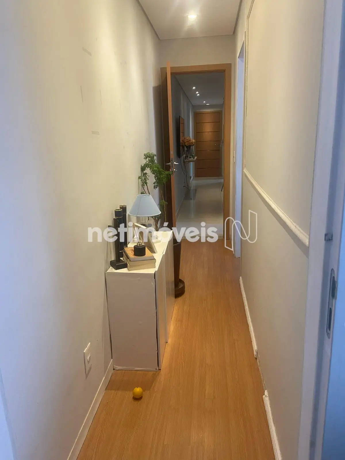 Sala com piso em porcelanato dois quartos com piso em laminado, sendo 01 suíte, banho social, com armários, box blindex, pia em granito e piso em porcelanato.