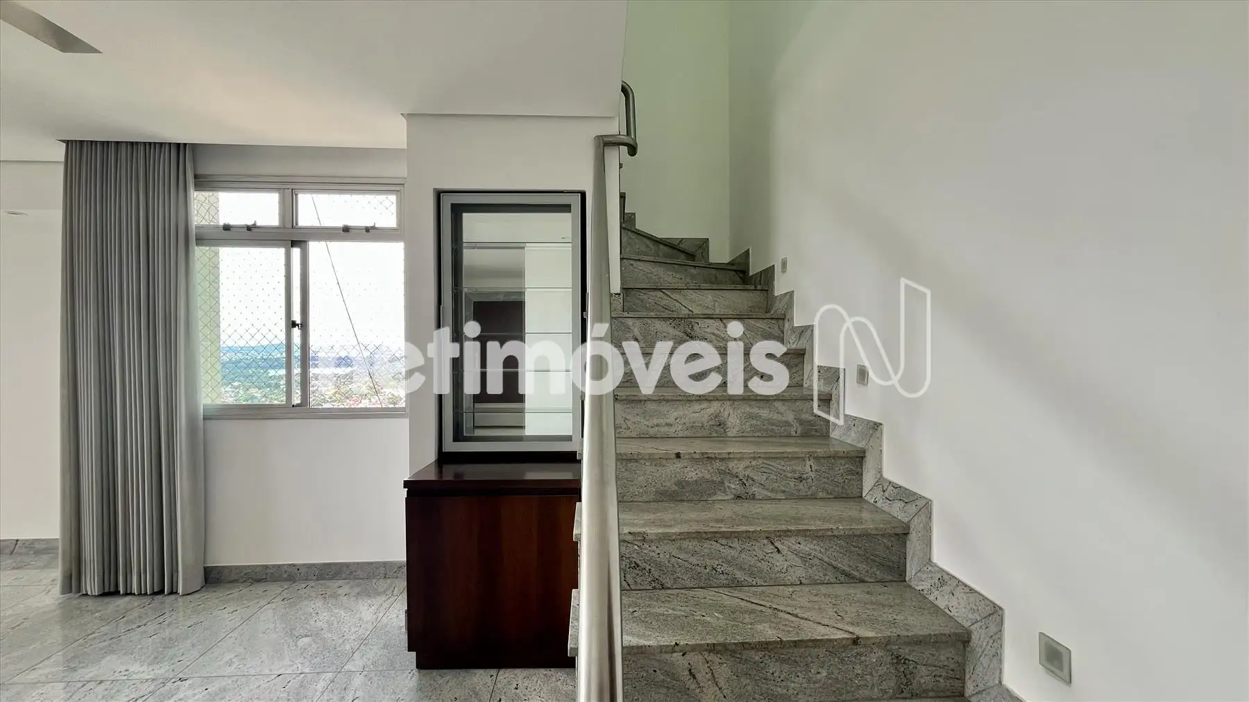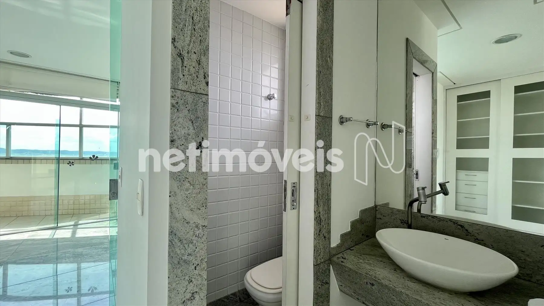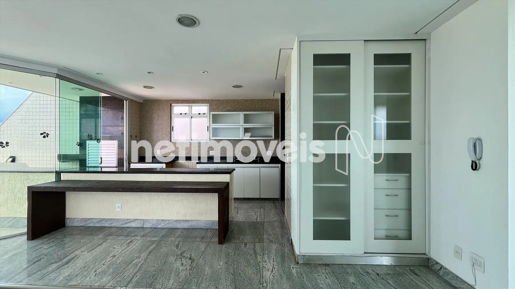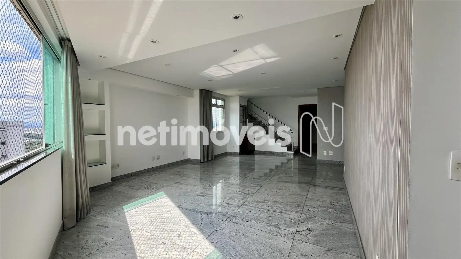- Espaçosa sala para dois ambientes, com piso em granito e janelas amplas com vista panorâmica;