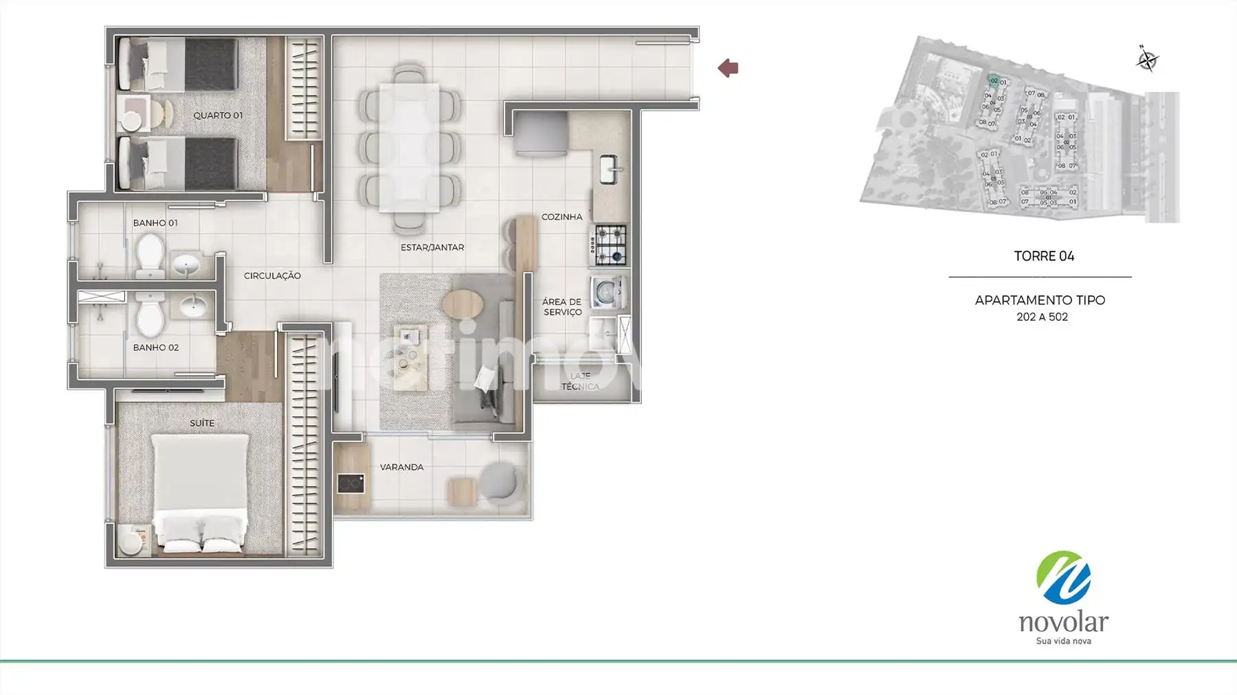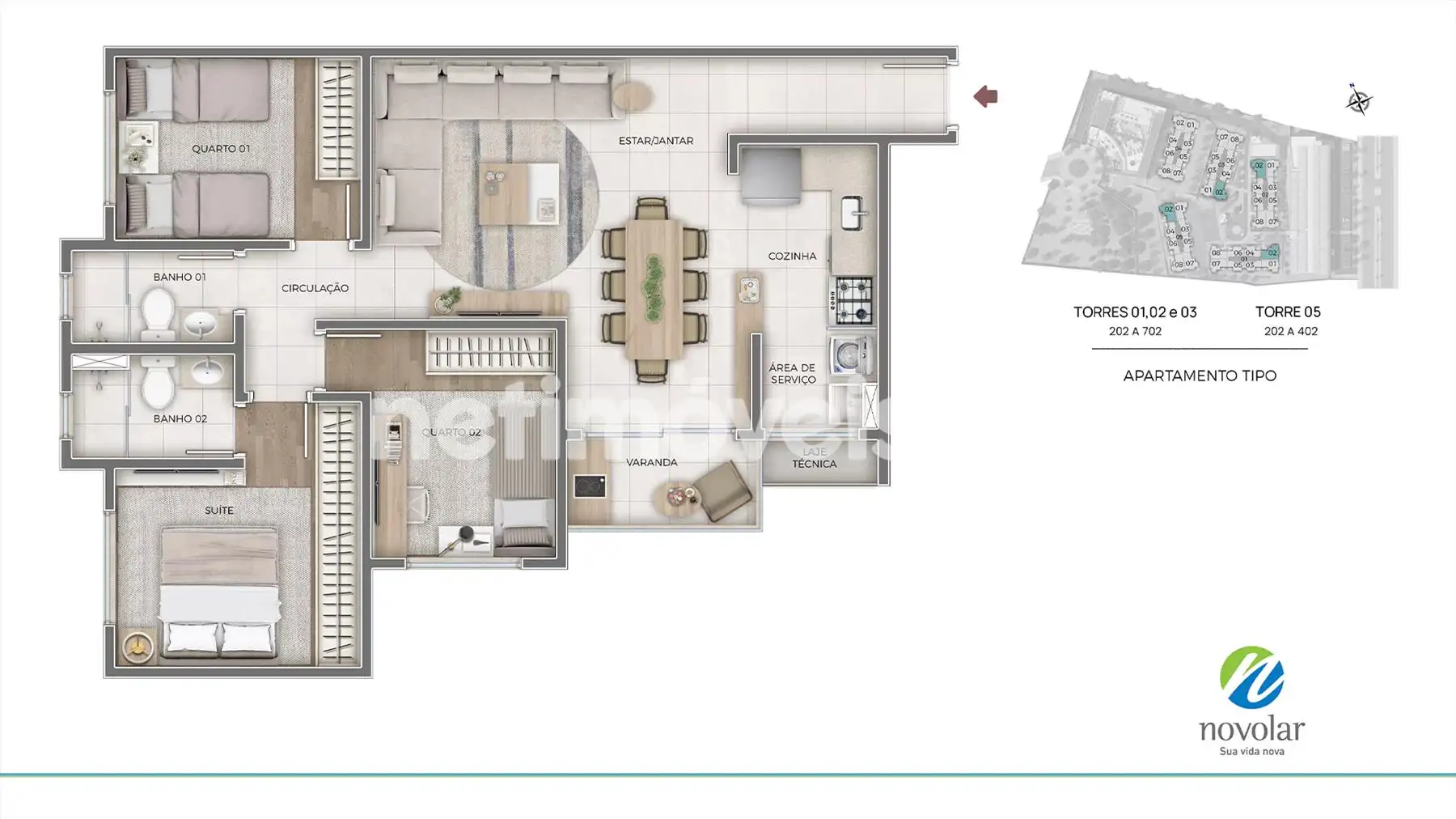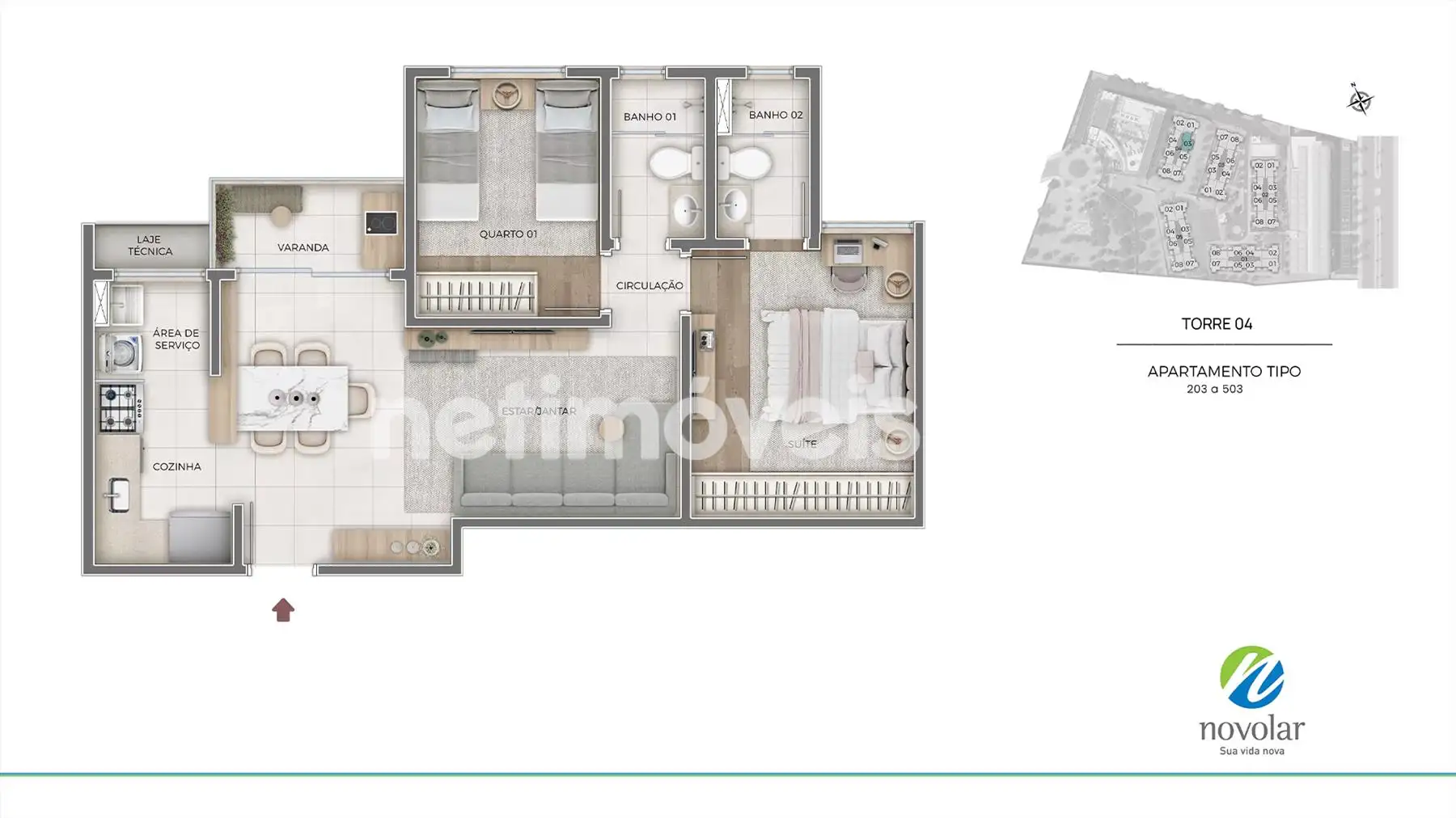 Conforto em um apartamento bem distribuído, com suíte e espaço otimizado.