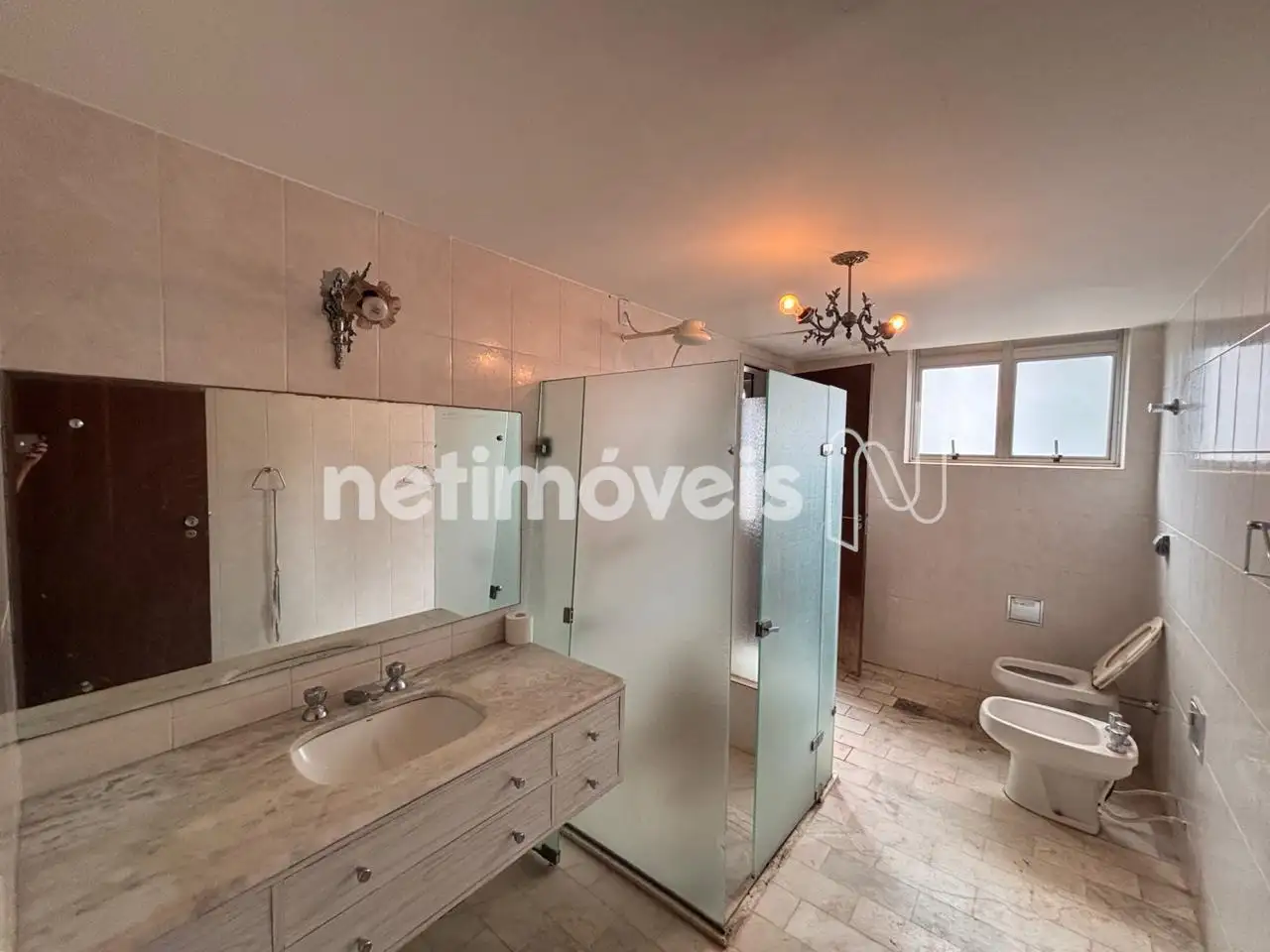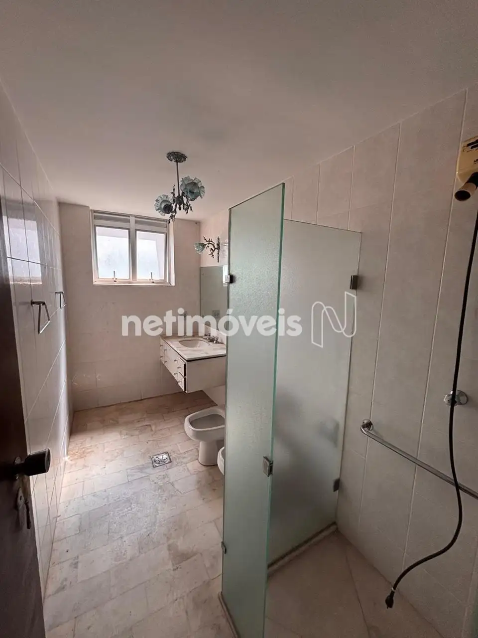 Banheiros (social e suíte) com revestimento em mármore e cerâmica.