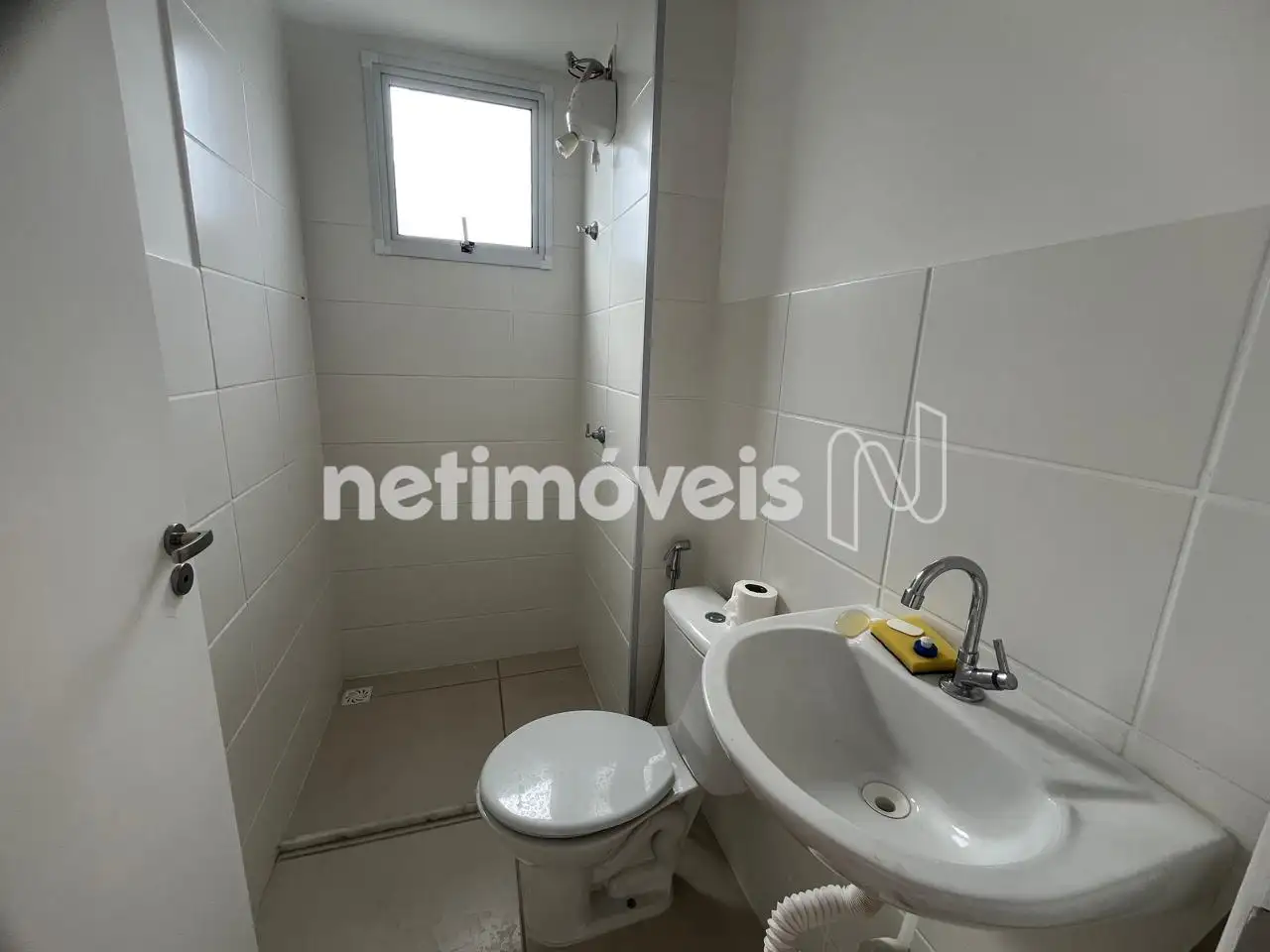 - Banheiro social com piso em porcelanato.