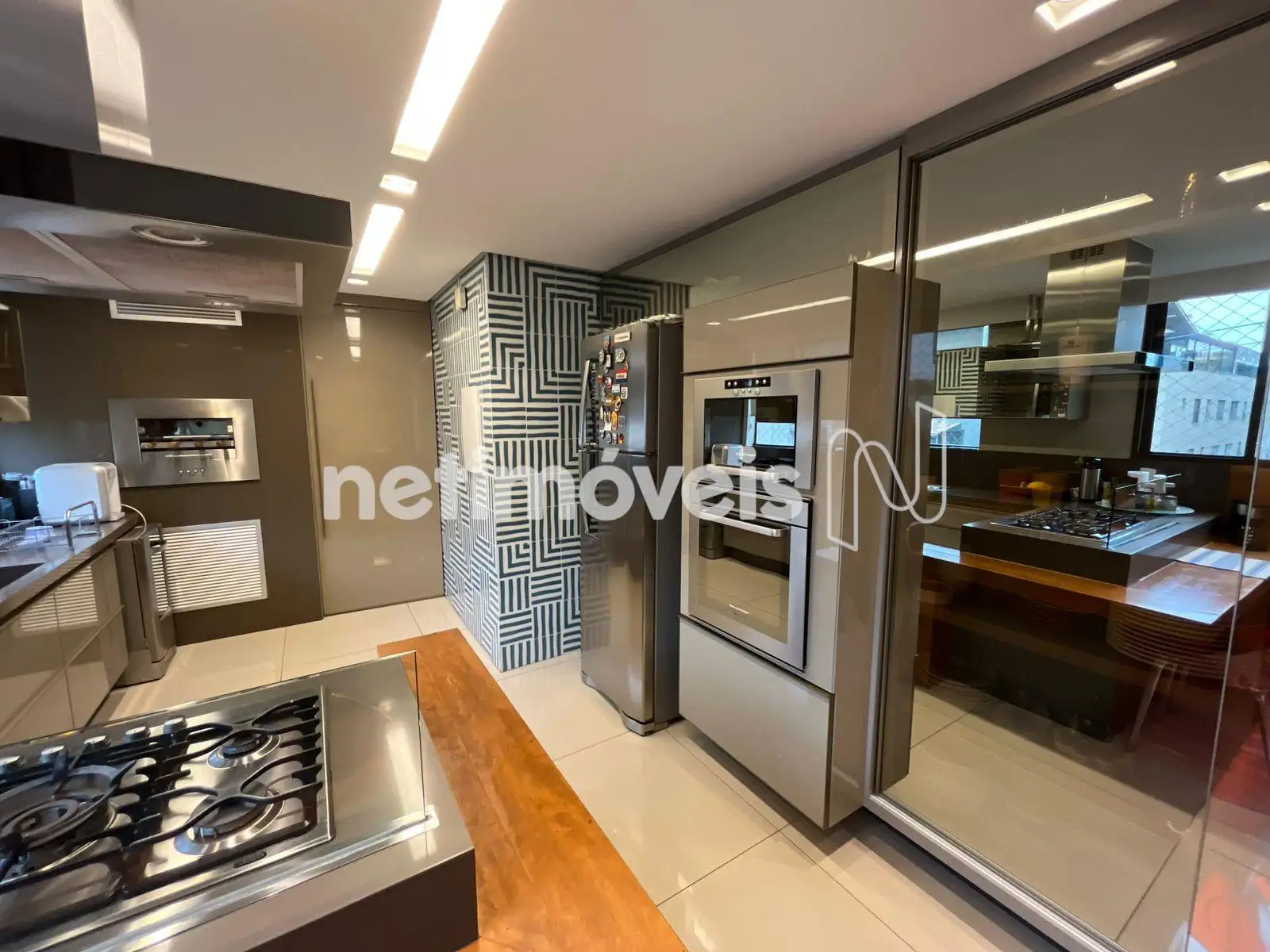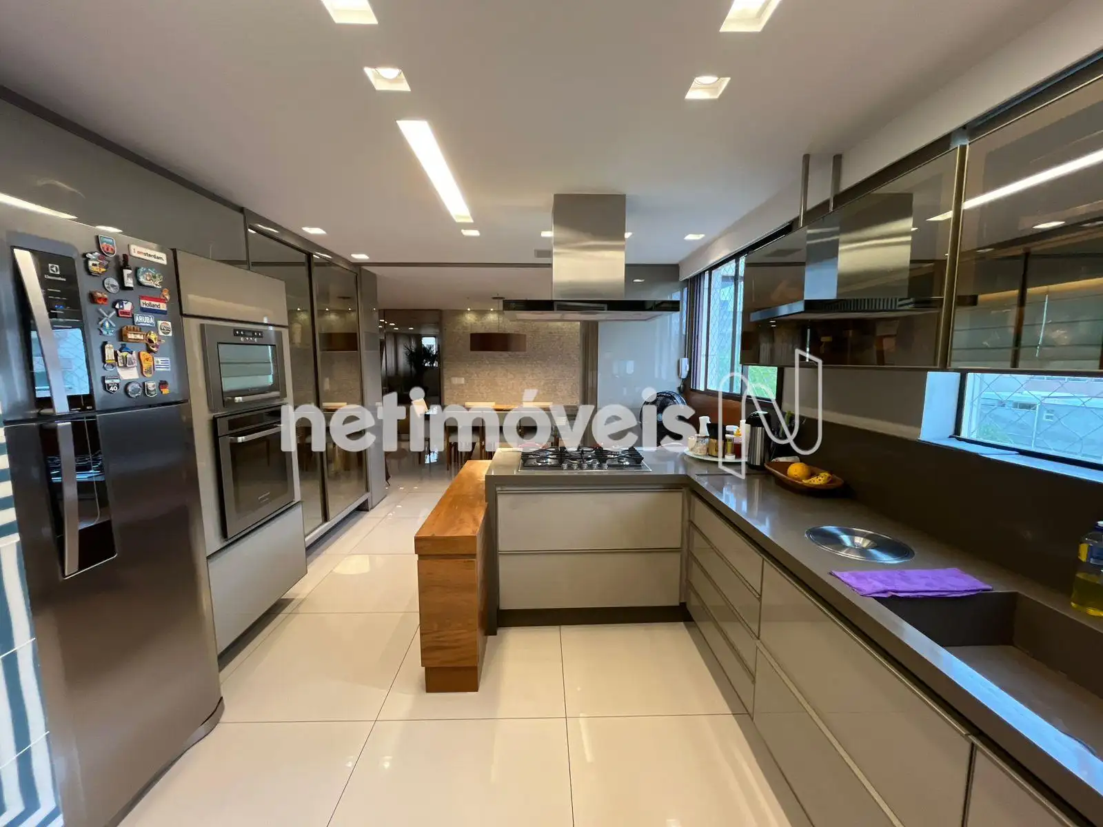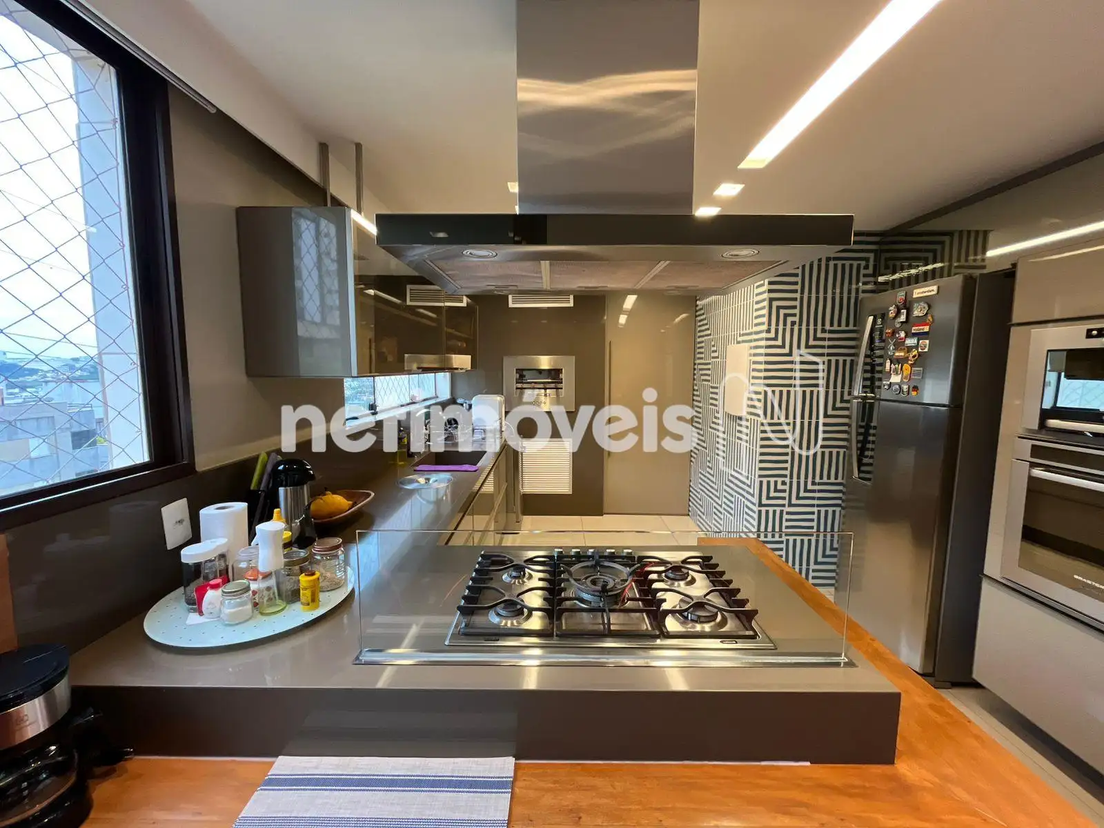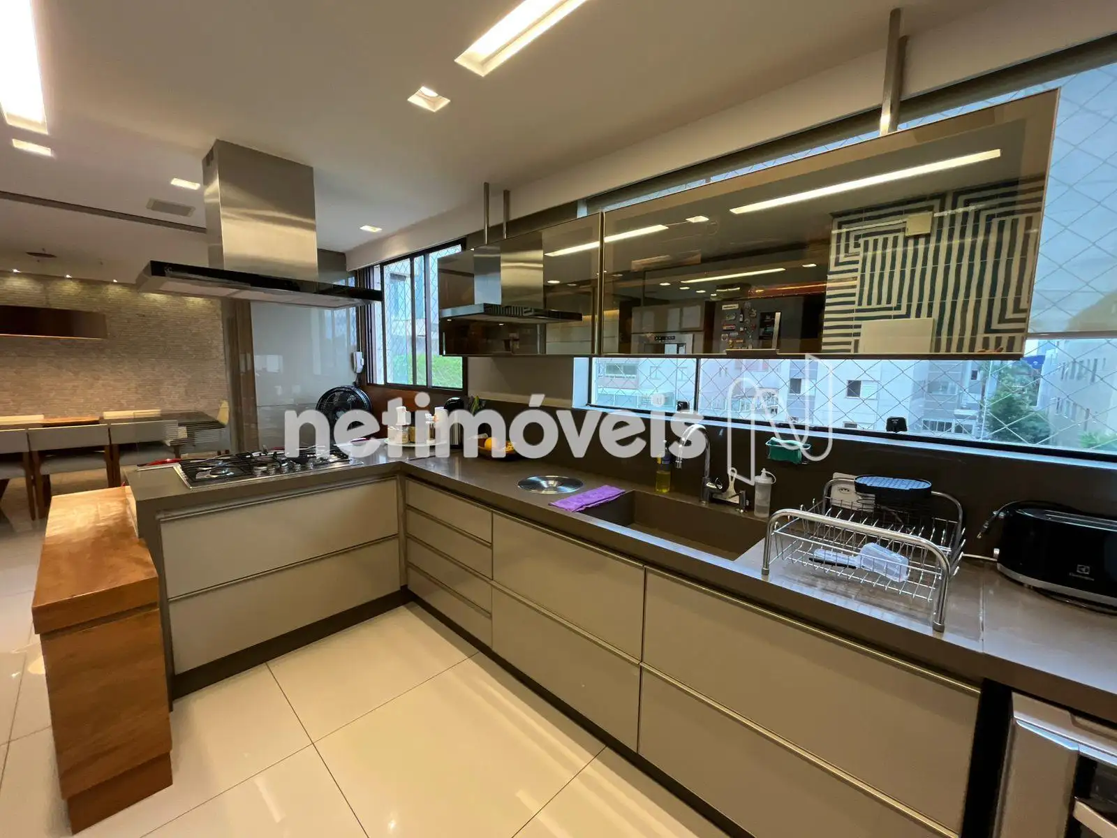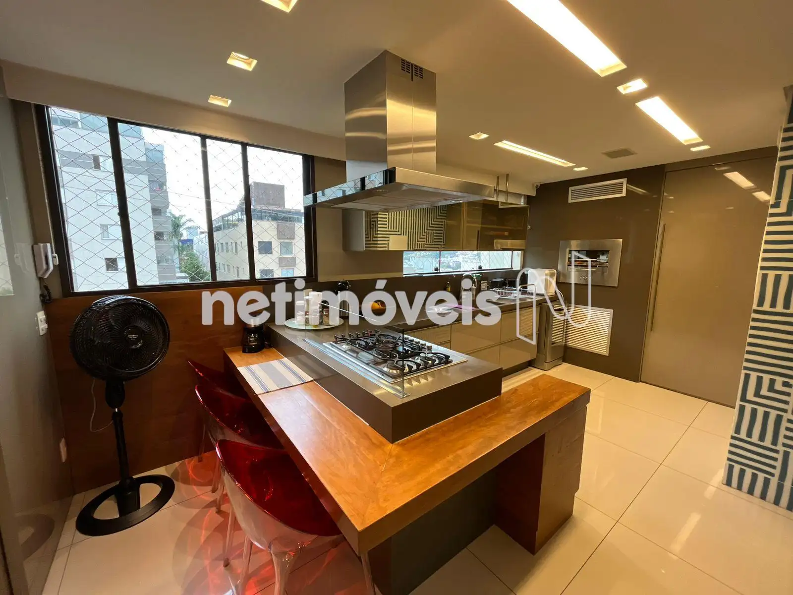 * Cozinha americana integrada com bancada, cooktop e coifa, churrasqueira;