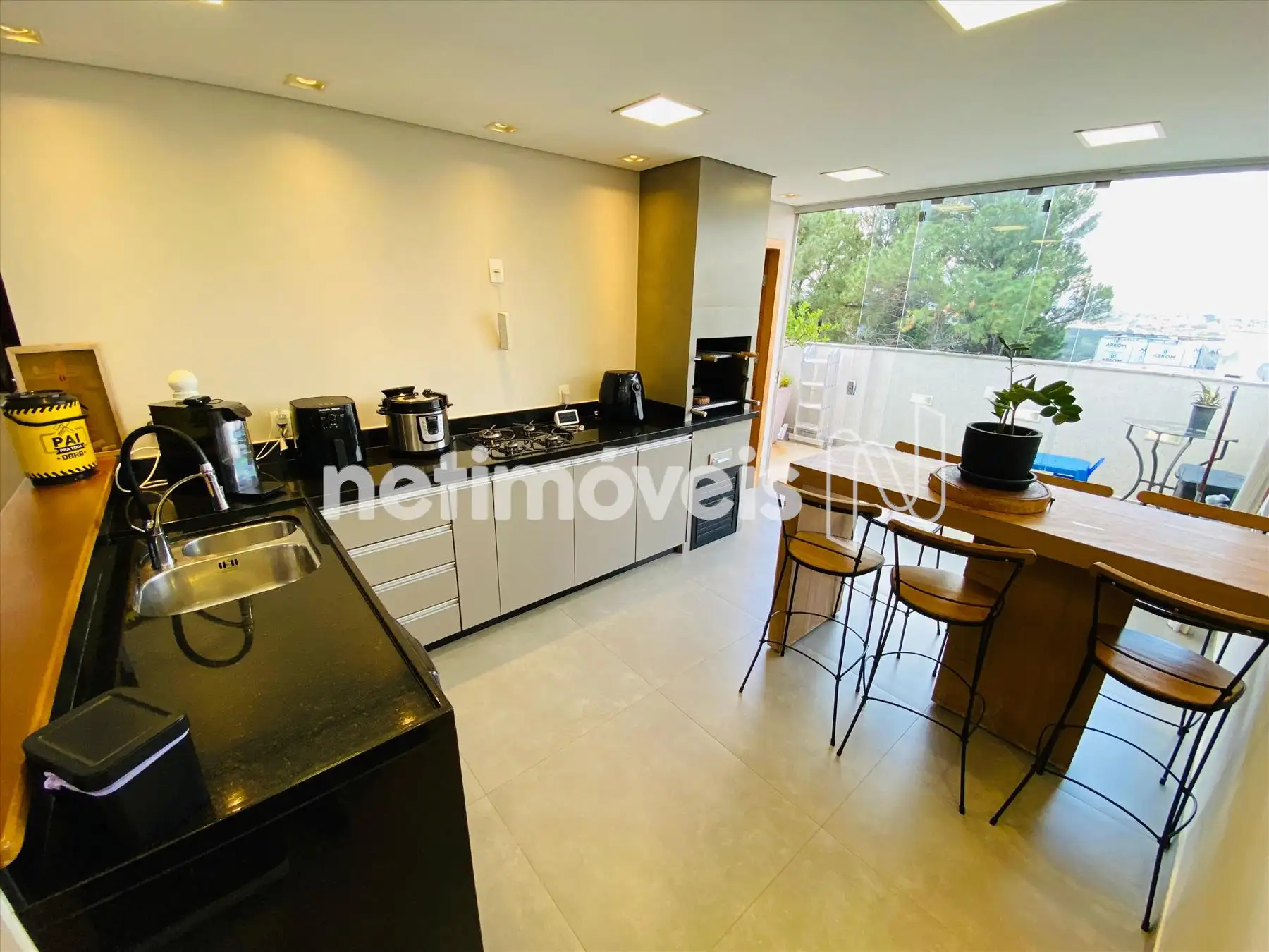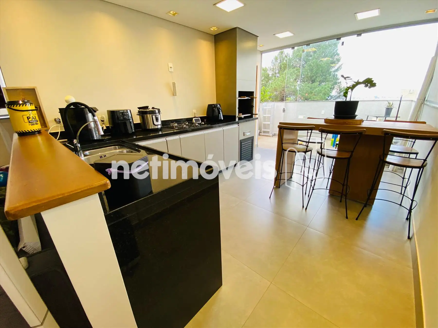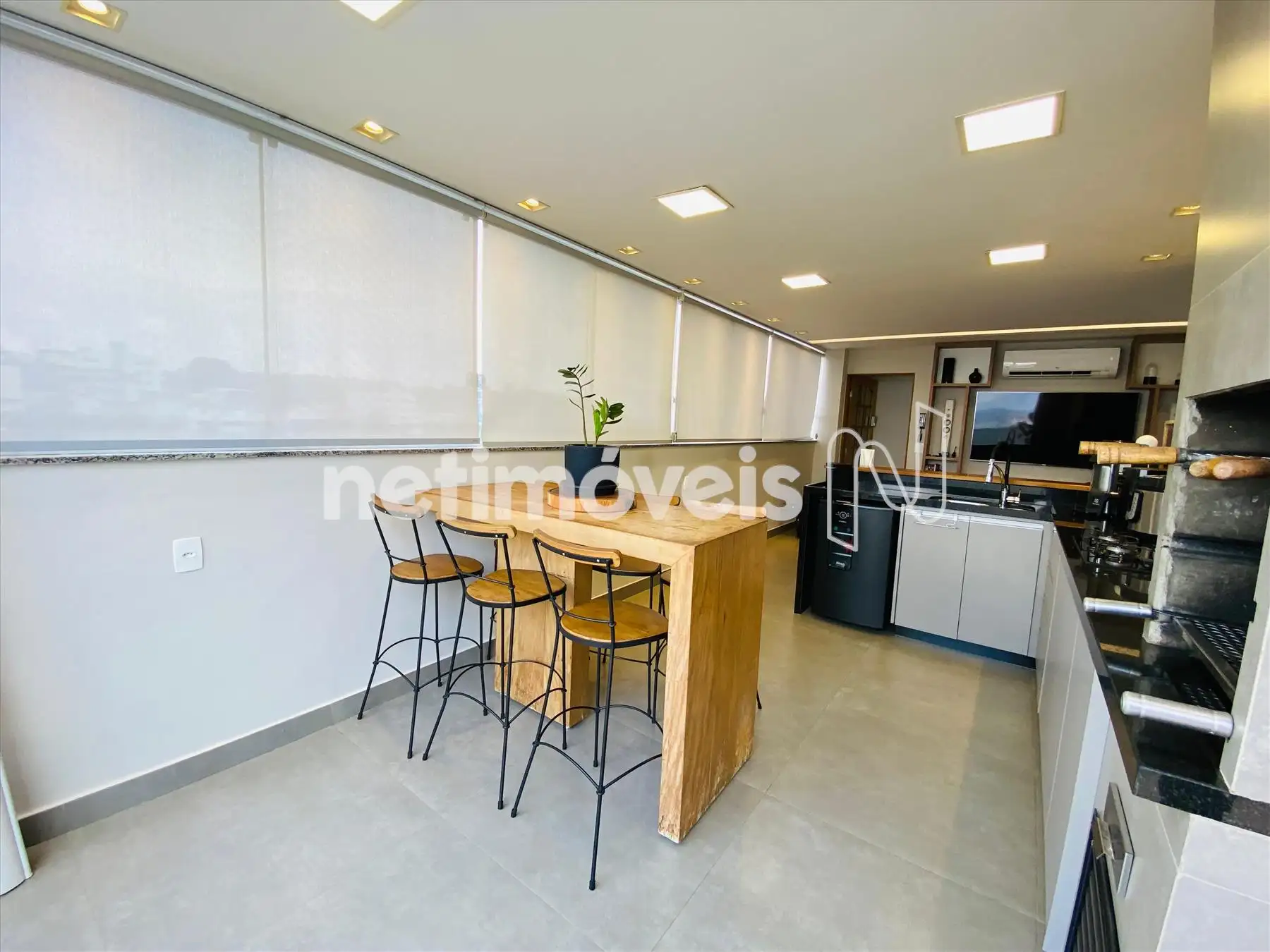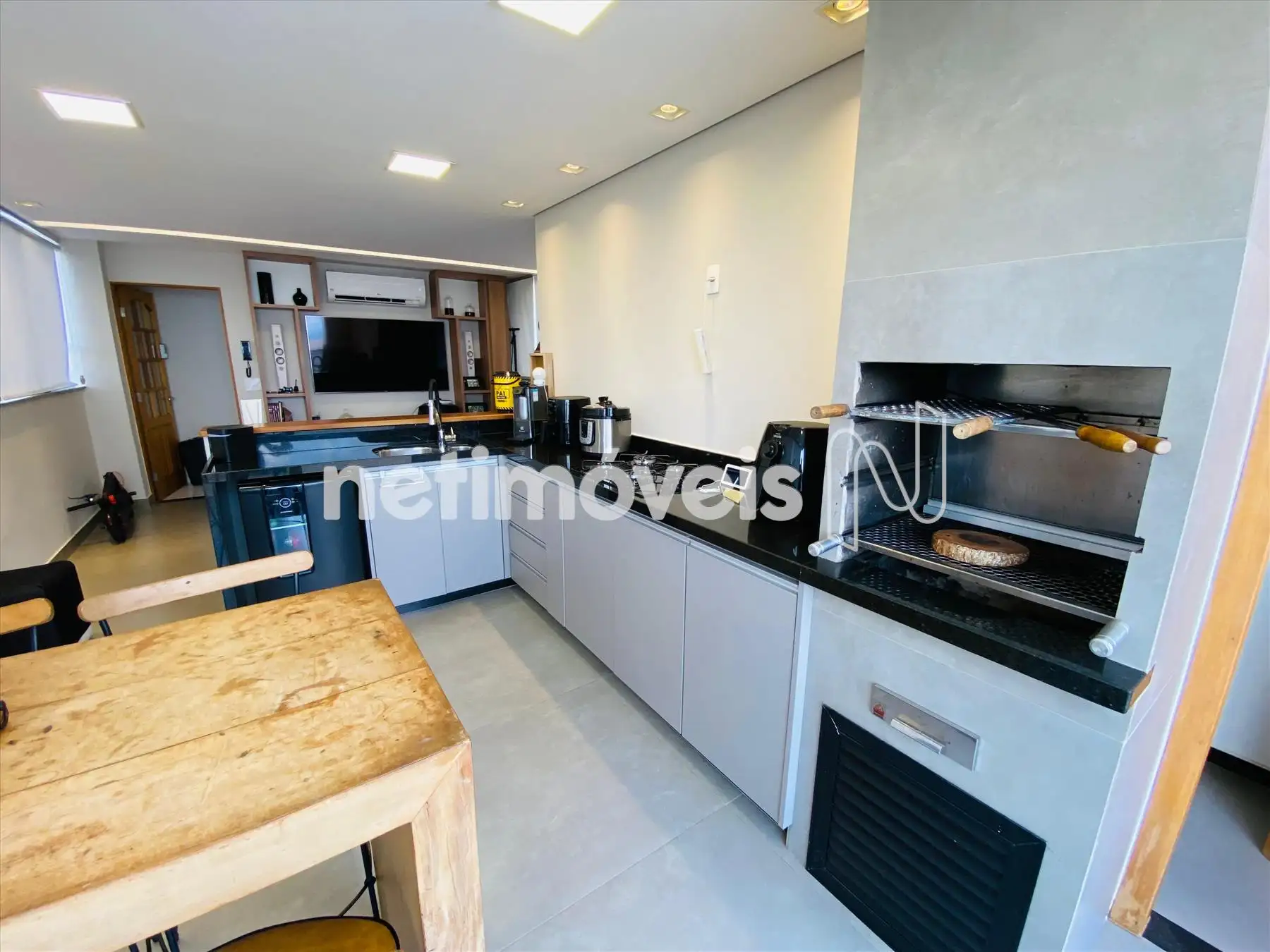 01 Sala do segundo piso com painel churrasqueira bancadas em granito de primeira qualidade.