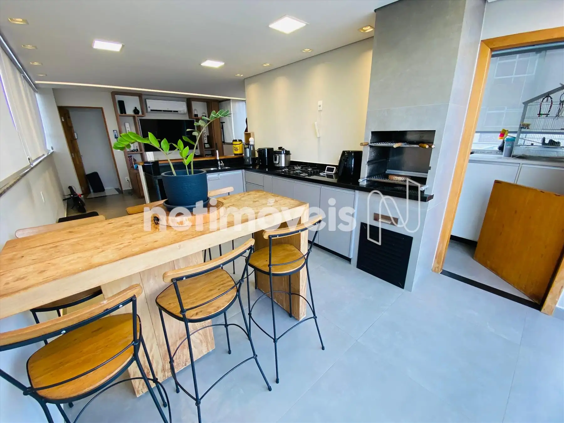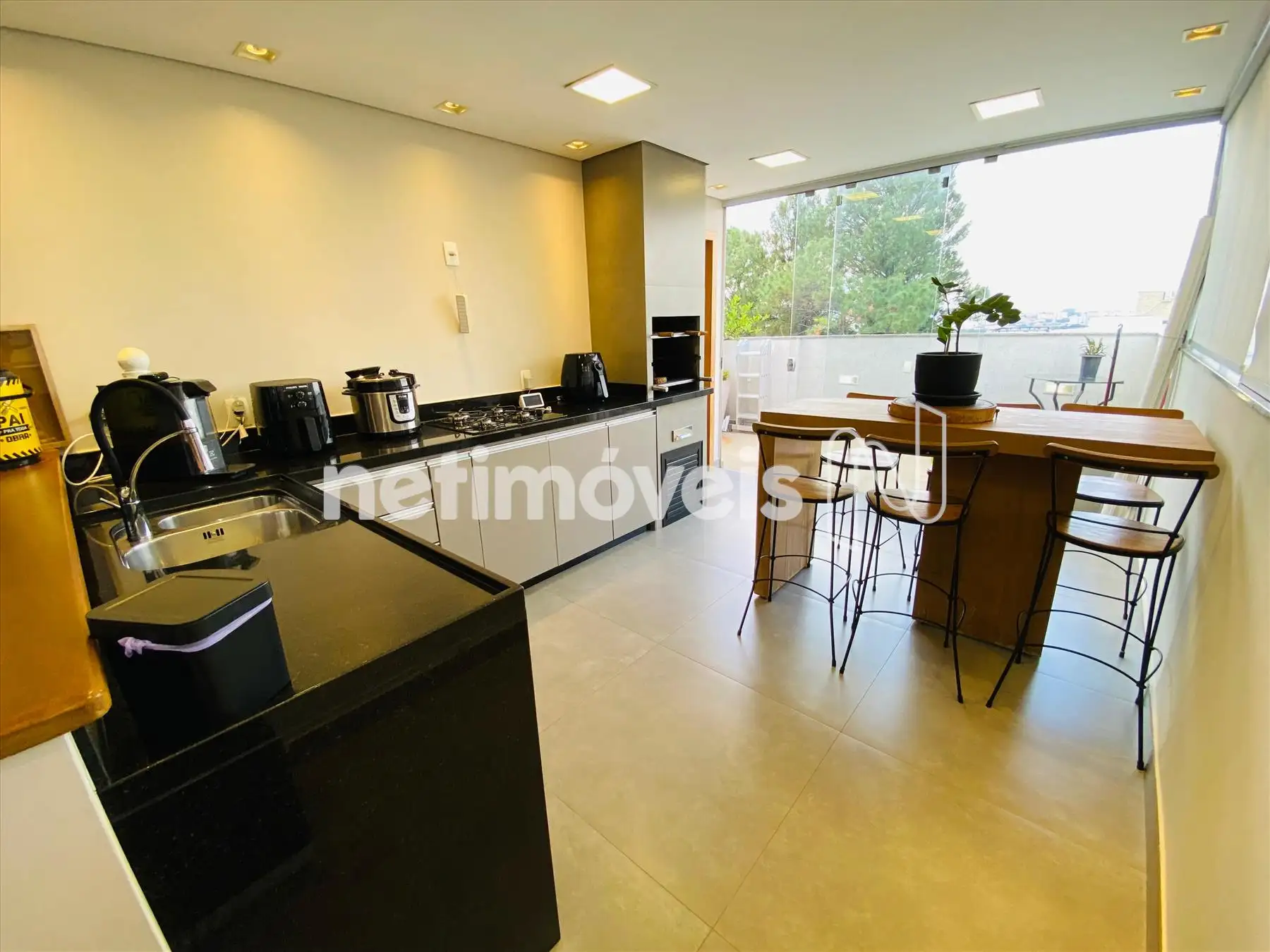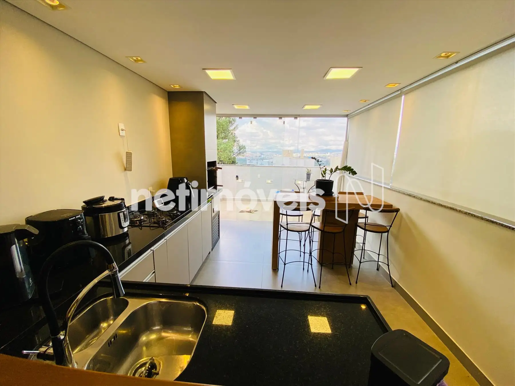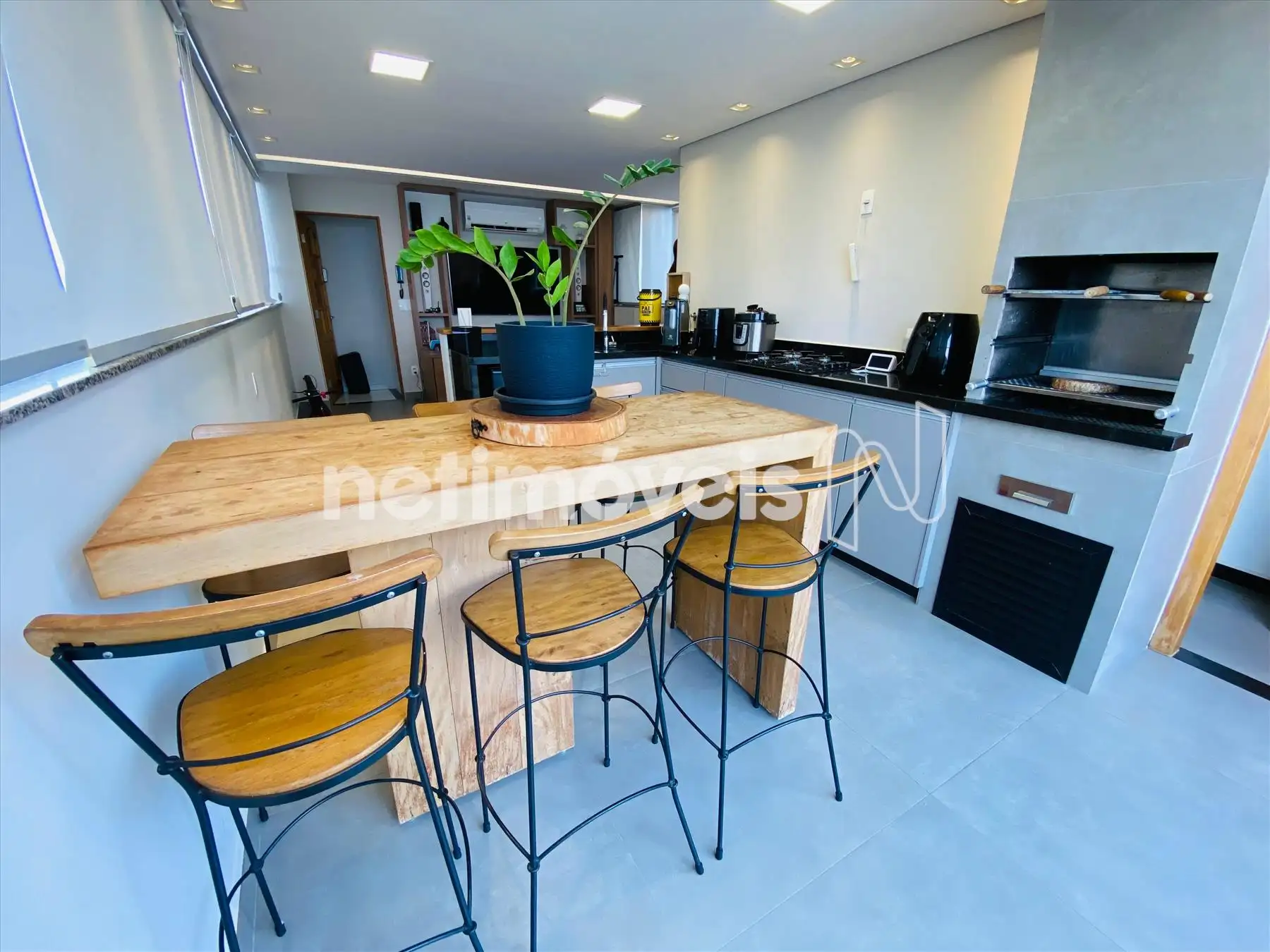 01 Sala do segundo piso com painel churrasqueira bancadas em granito de primeira qualidade.