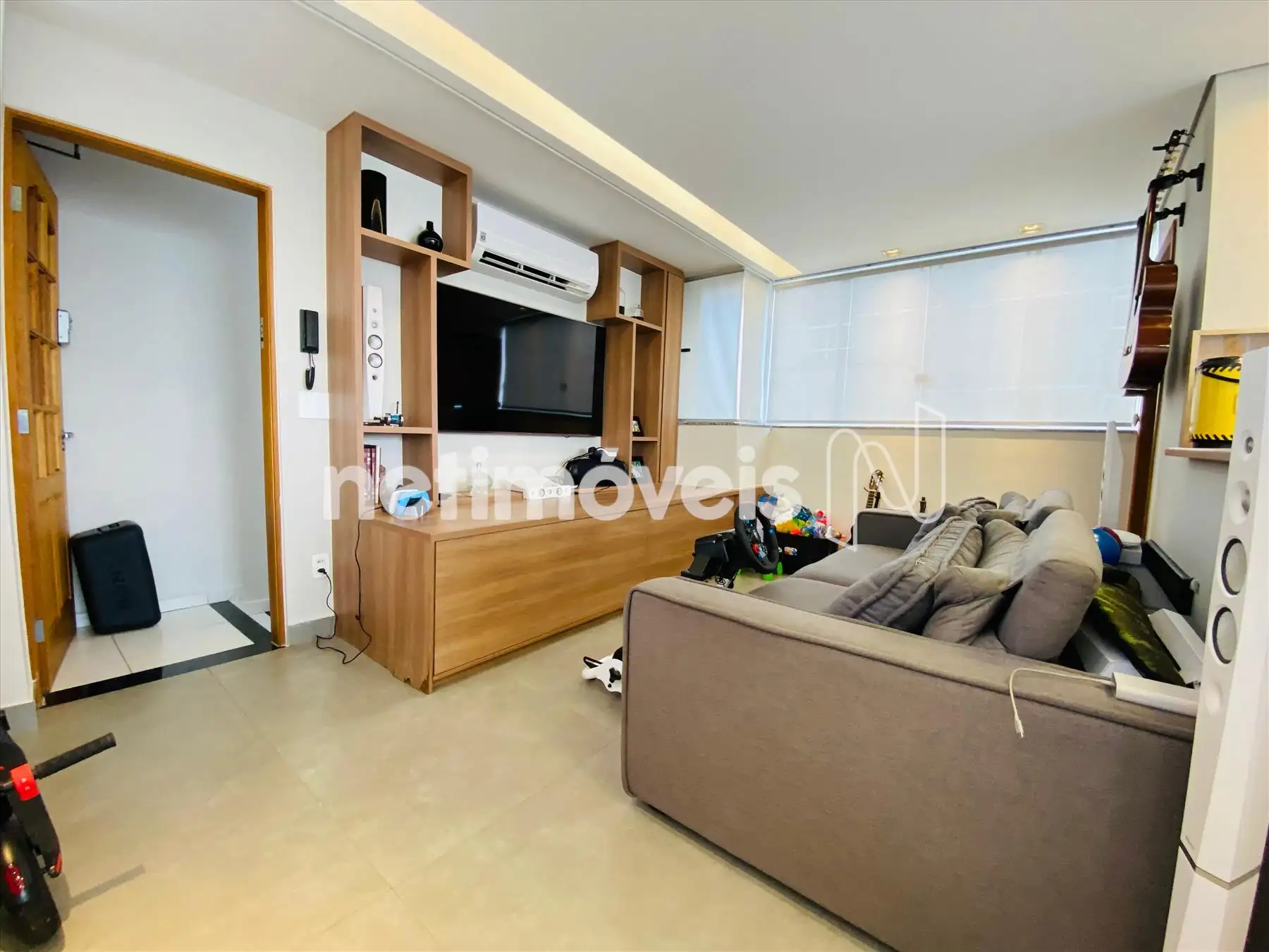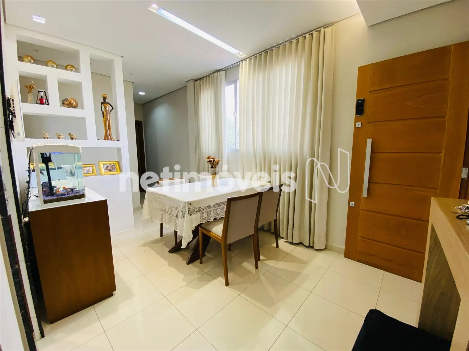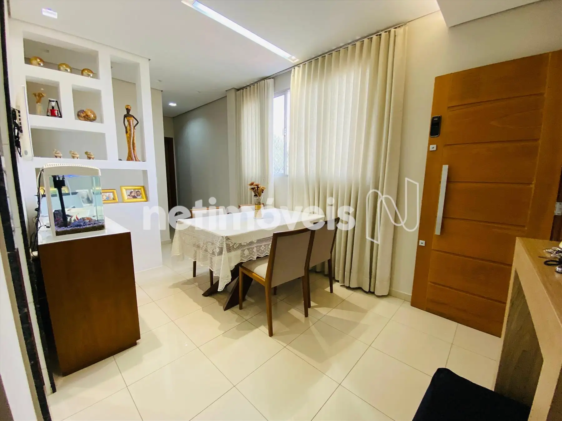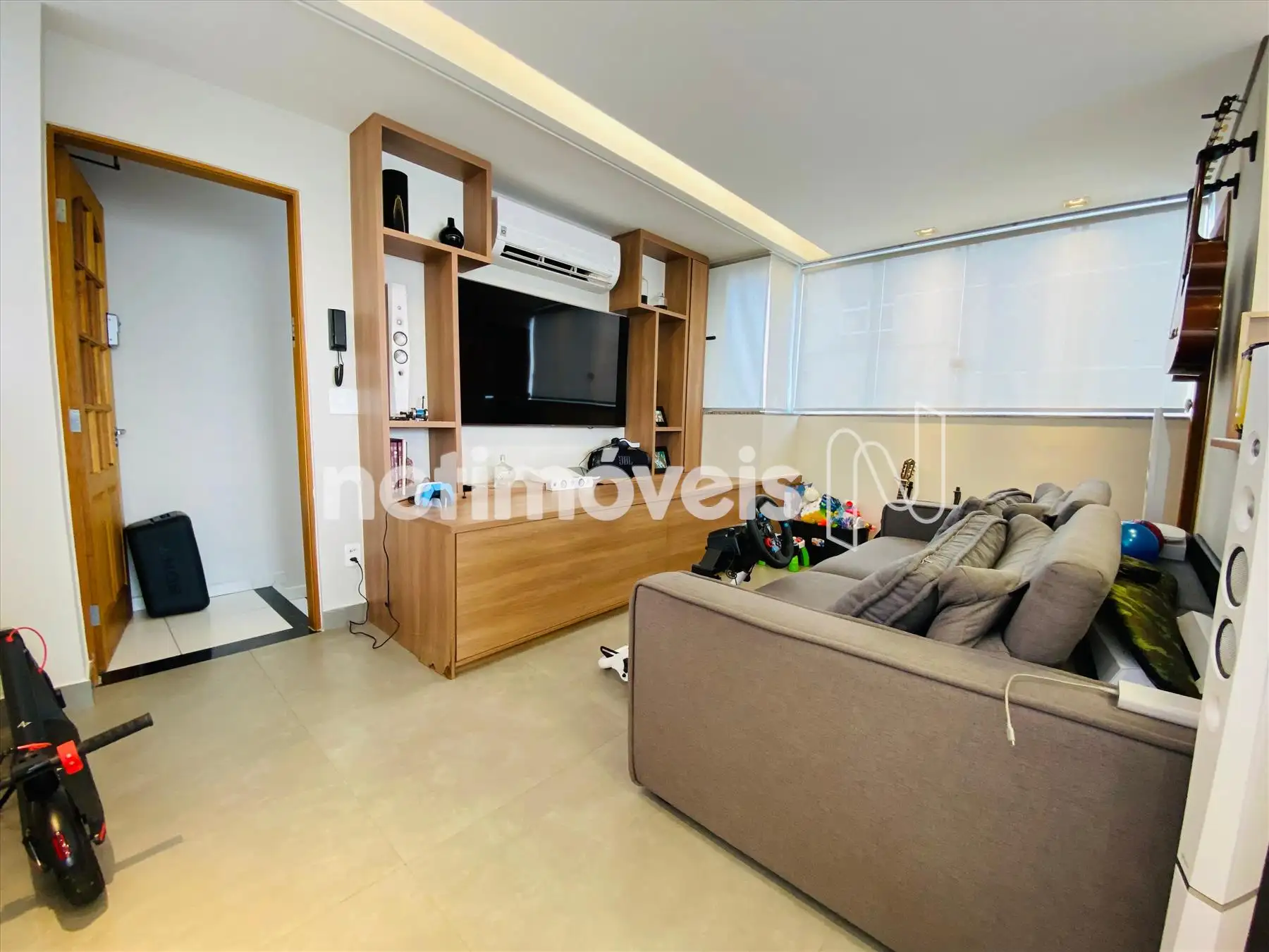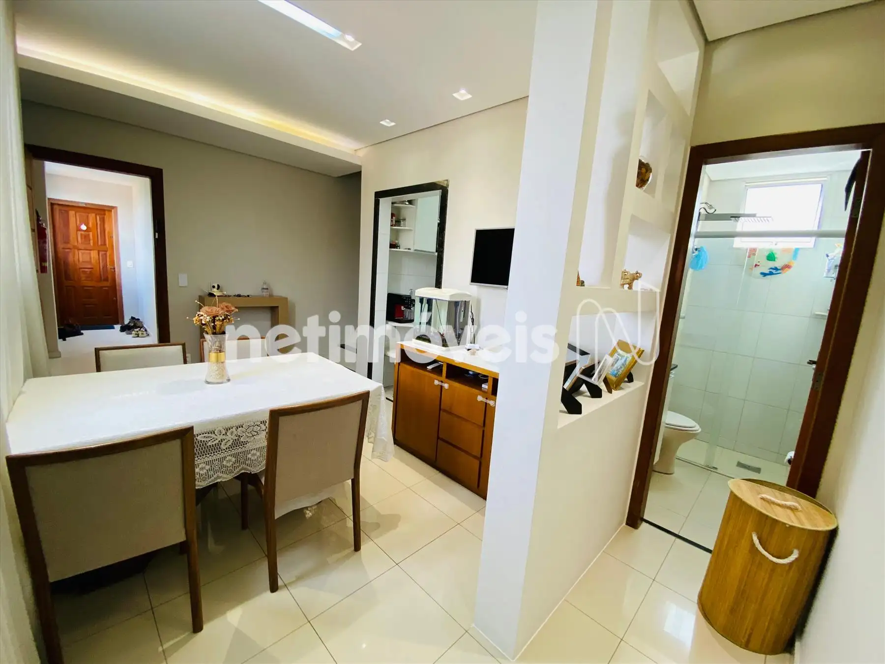 01 Sala para 02 ambientes piso porcelanato.