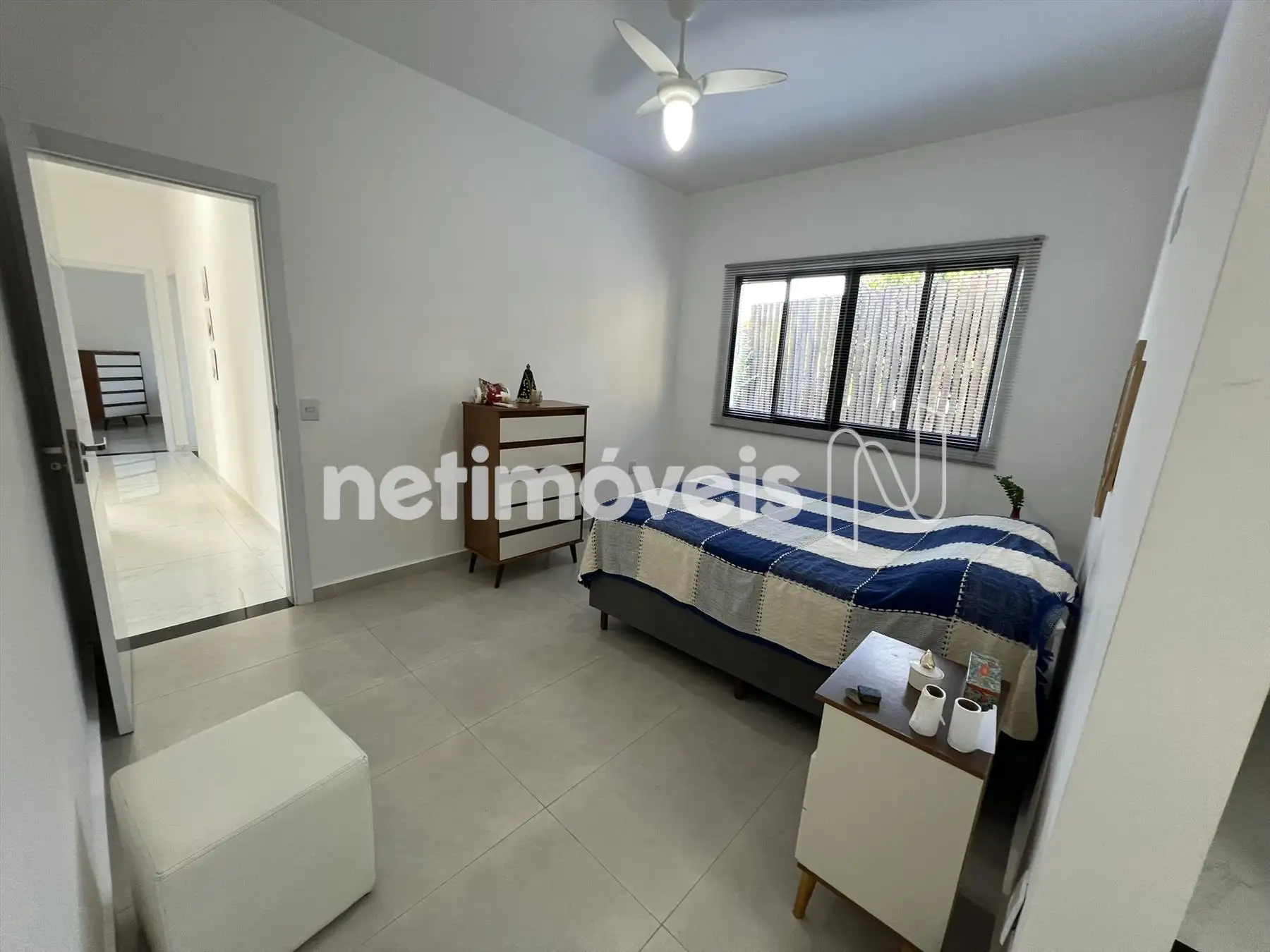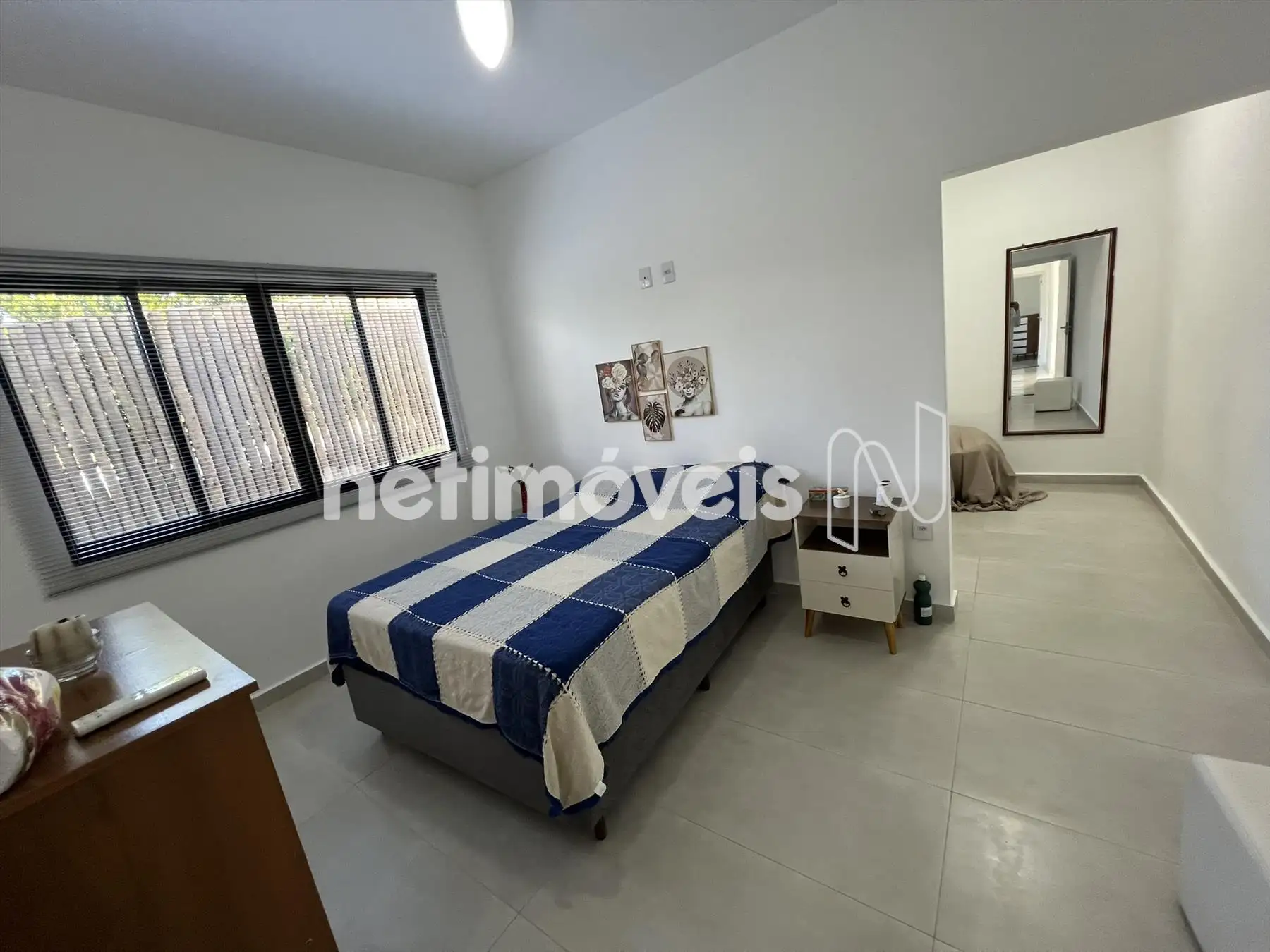 04 quartos, com piso em porcelanato, sendo 01 suíte