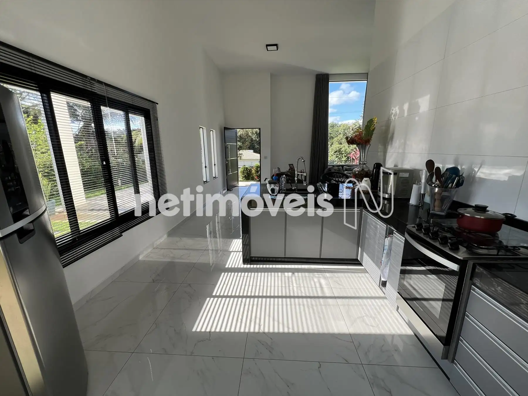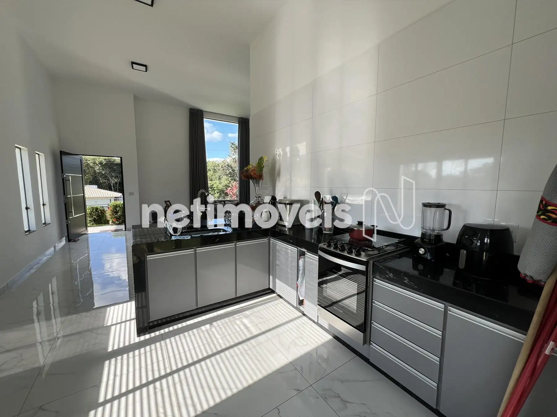 Cozinha rica em armários com piso em porcelanato e acabamentos de primeira linha
