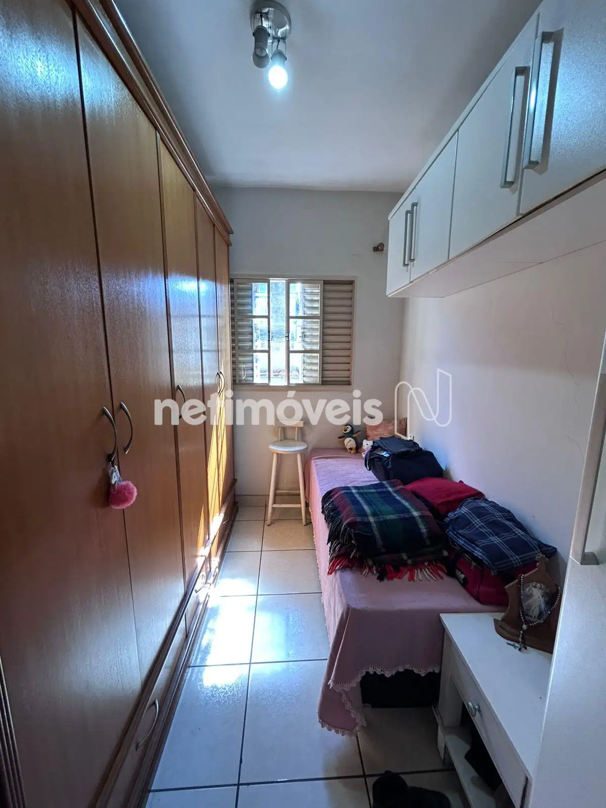 3 quartos, sala e copa grandes, banheiro social com box, armários e espelhos;