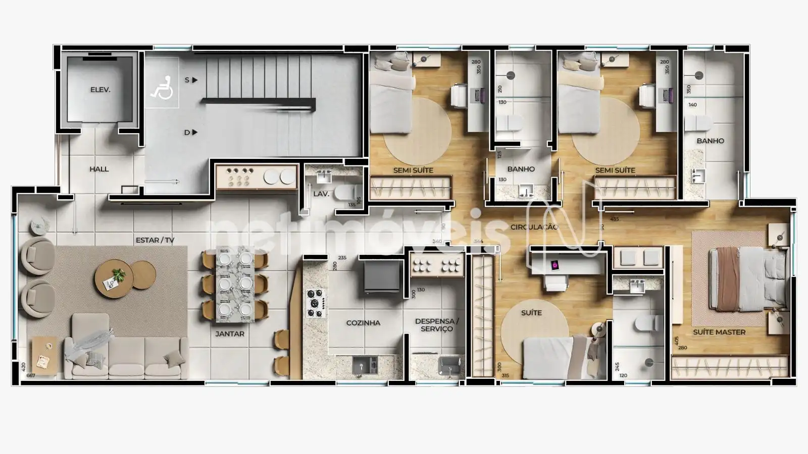 - 4 quartos, sendo 2 suítes e 2 semi suítes