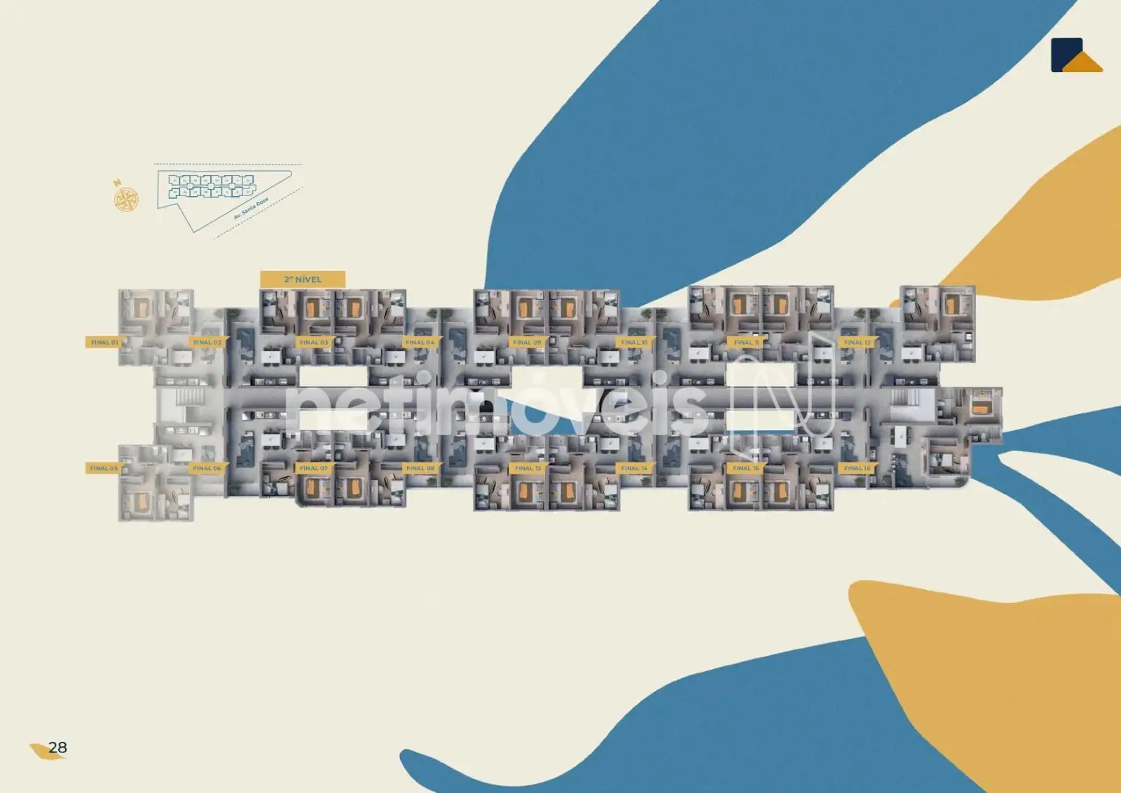 • 4 coberturas duplex, 16 unidades com área privativa e 50 unidades tipo.