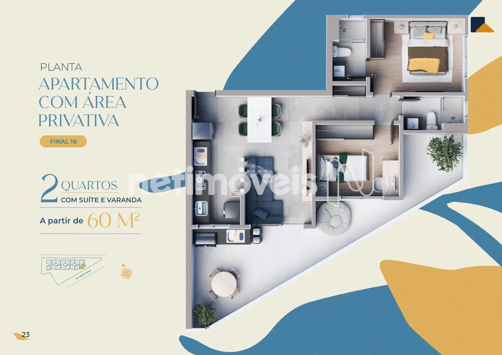 2 quartos com suíte e varanda, com acabamento de alto padrão.