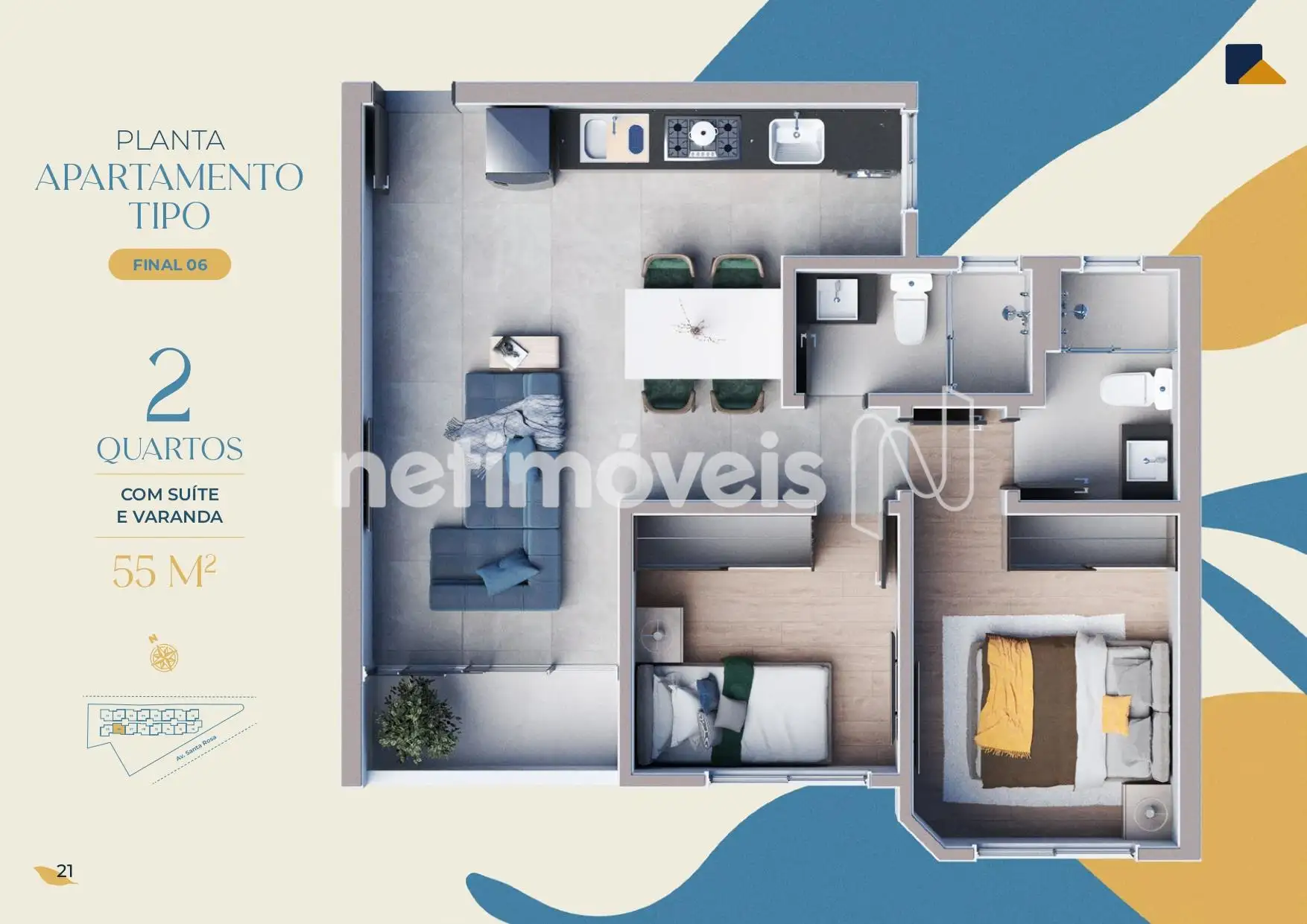 2 quartos com suíte e varanda, com acabamento de alto padrão.
