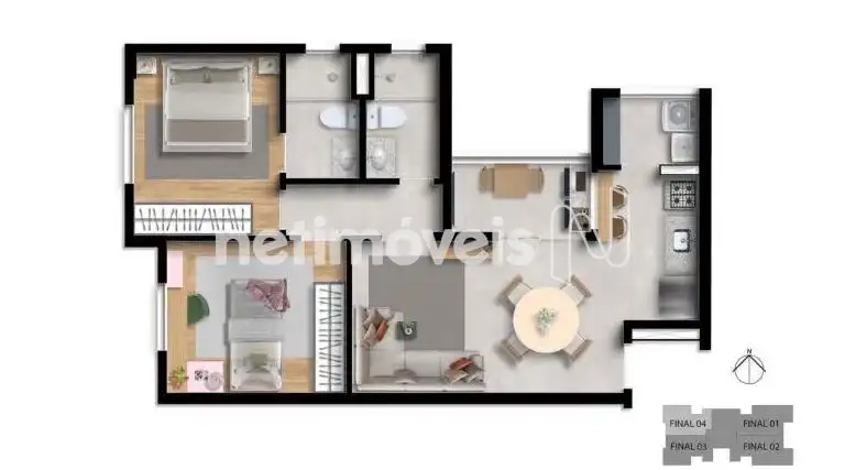 - O imóvel conta com sala para 02 ambientes integrada à varanda gourmet, 02 quartos sendo 01 suíte, banho social, cozinha e área de serviço, além de infraestrutura para ar-condicionado.