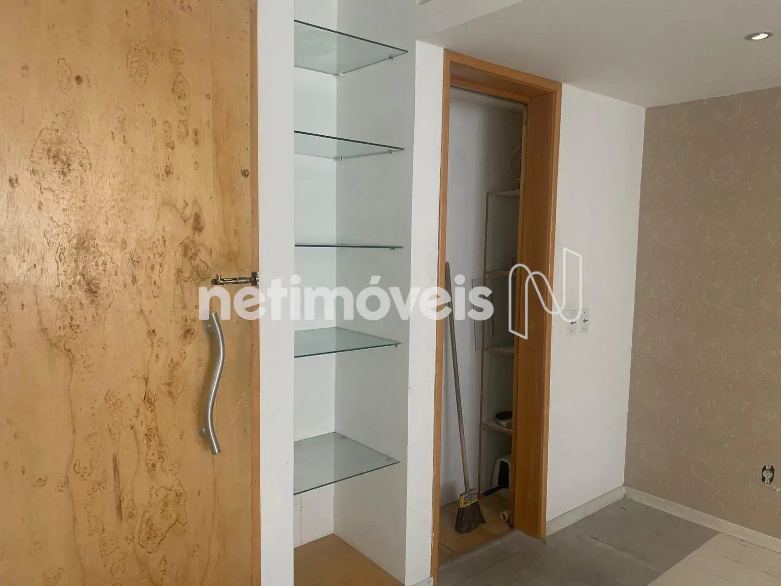 * 01 Sala ampla com armários em madeira e prateleiras em vidro temperado, com psio laminado em madeira,